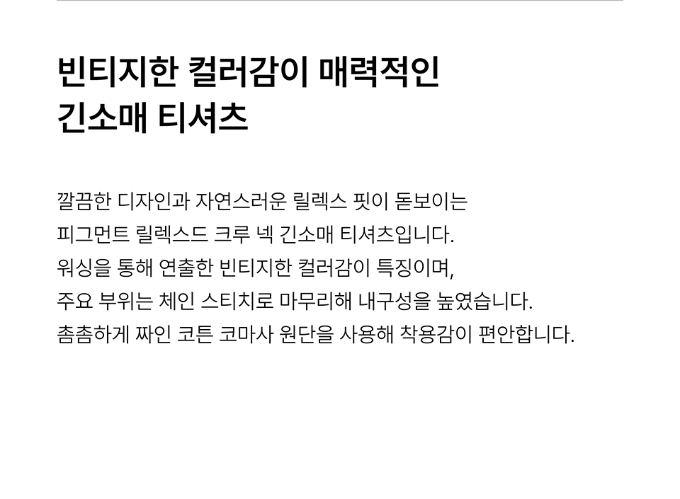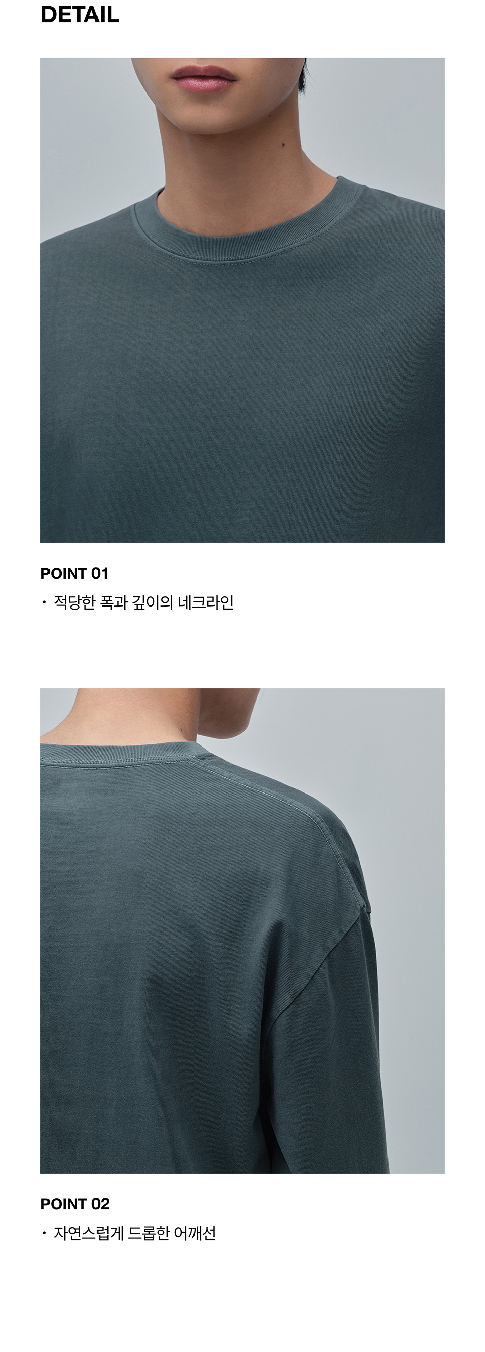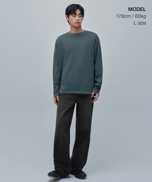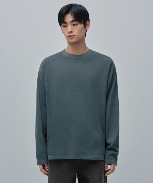 피그먼트 릴렉스드 크루 넥 긴소매 티셔츠 [차콜 그레이]