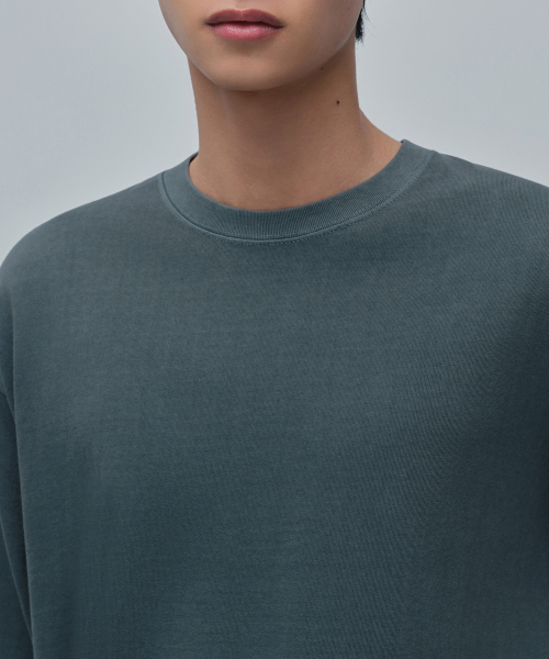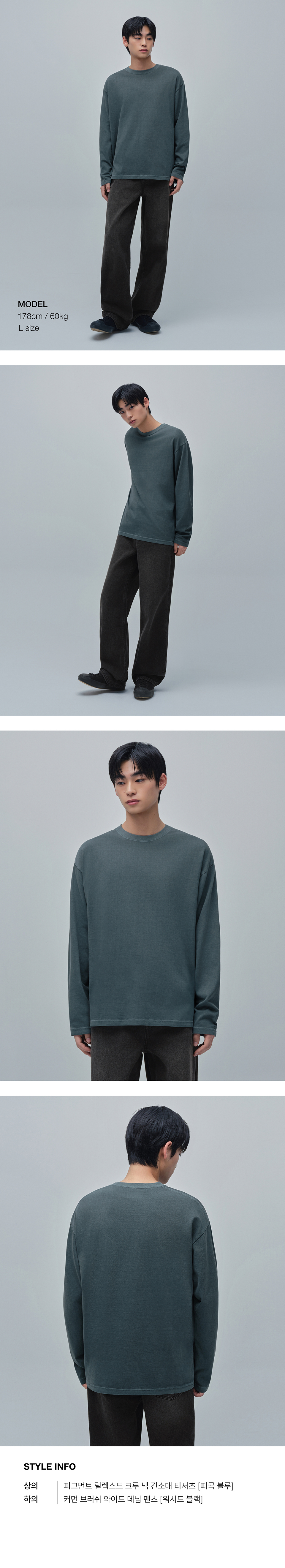 피그먼트 릴렉스드 크루 넥 긴소매 티셔츠 [피콕 블루]