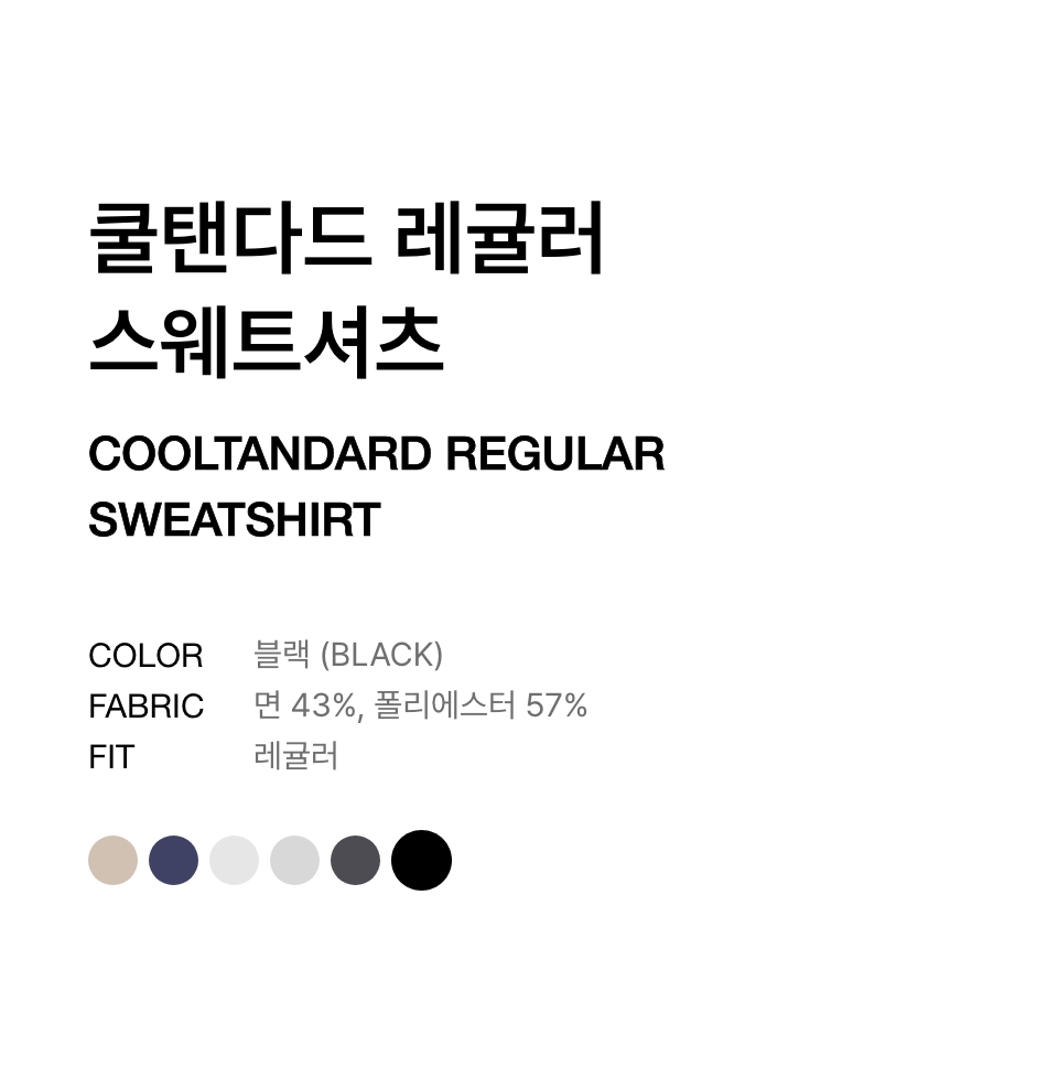 [쿨탠다드] 레귤러 스웨트셔츠 [블랙]