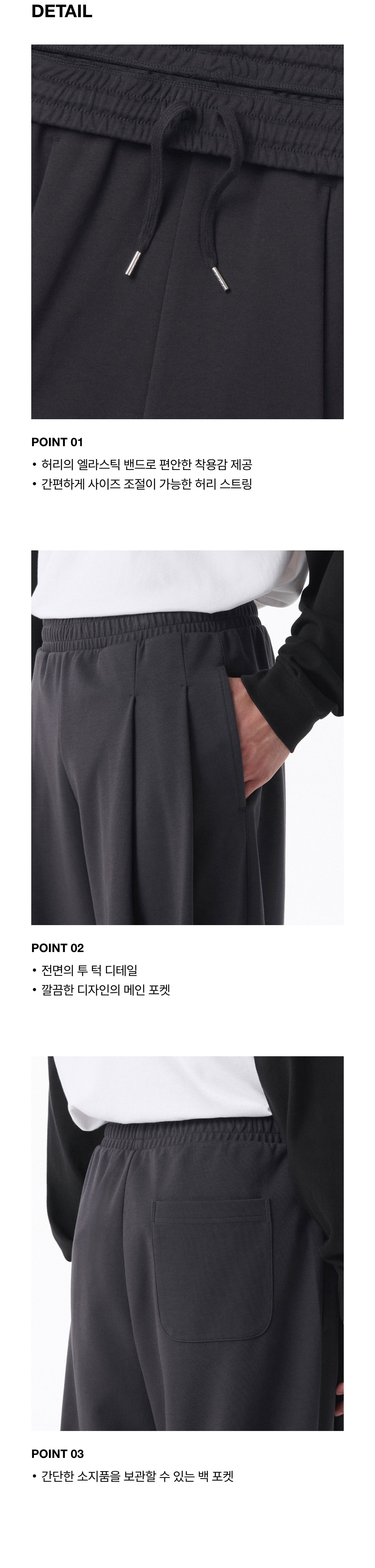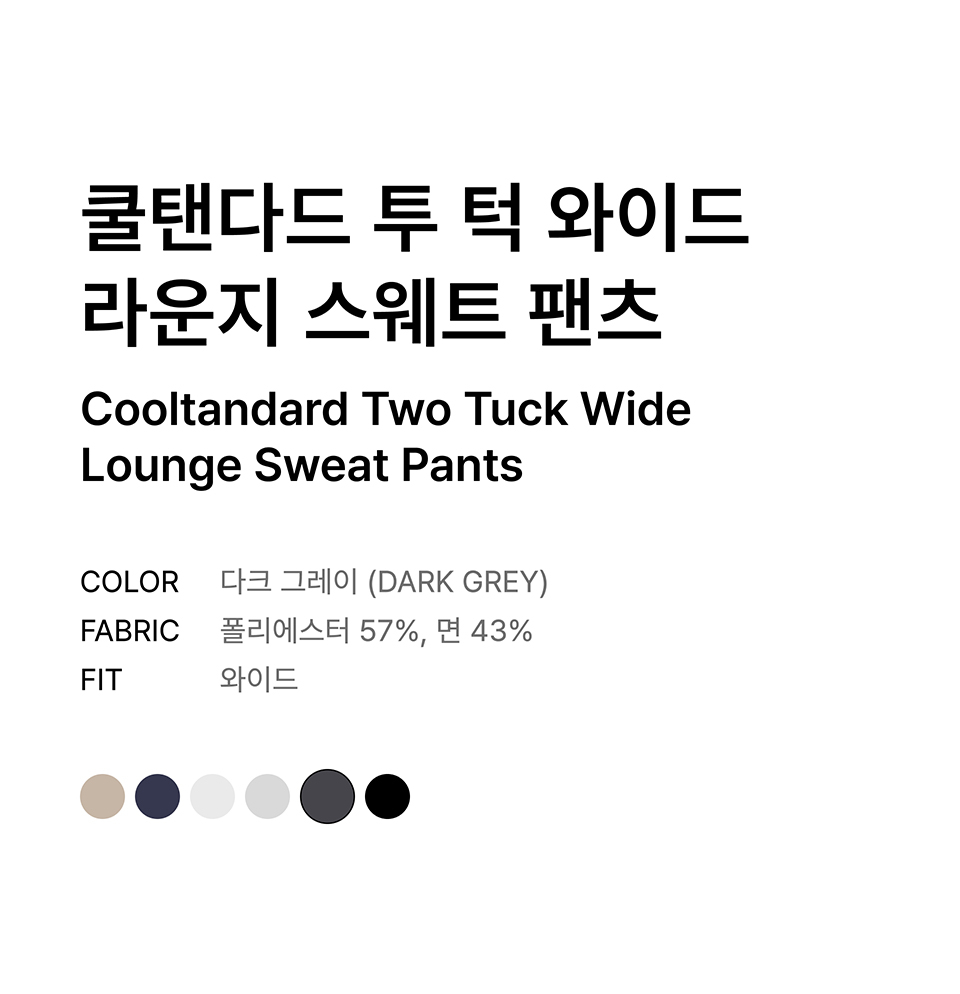 [쿨탠다드] 투 턱 와이드 라운지 스웨트 팬츠 [다크 그레이]