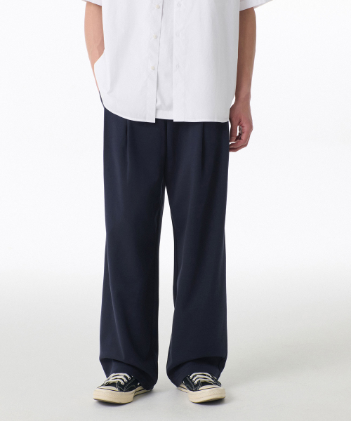 [쿨탠다드] 원 턱 와이드 라운지 스웨트 팬츠 [네이비]