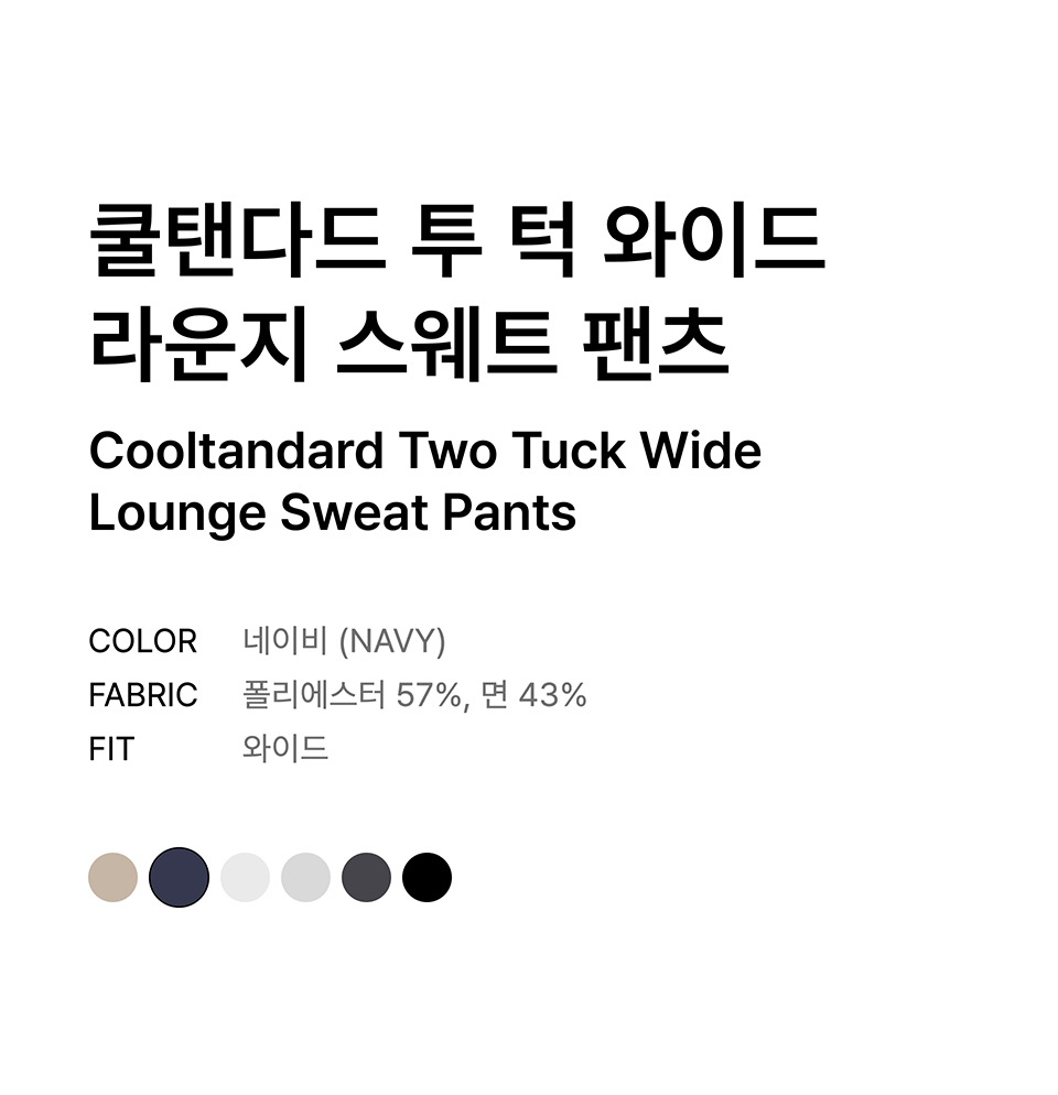 [쿨탠다드] 투 턱 와이드 라운지 스웨트 팬츠 [네이비]