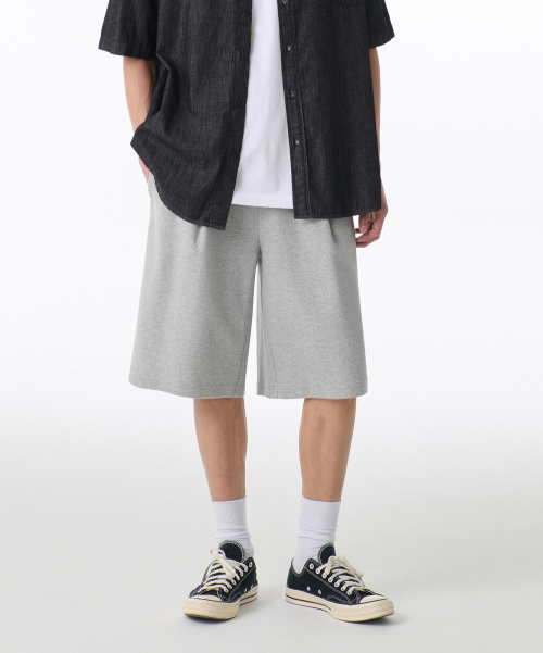 [쿨탠다드] 원 턱 버뮤다 스웨트 팬츠 [멜란지 라이트 그레이]