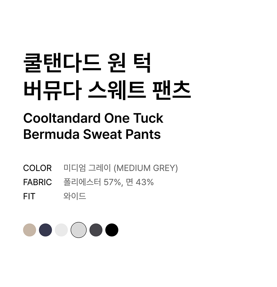 [쿨탠다드] 원 턱 버뮤다 스웨트 팬츠 [미디엄 그레이]