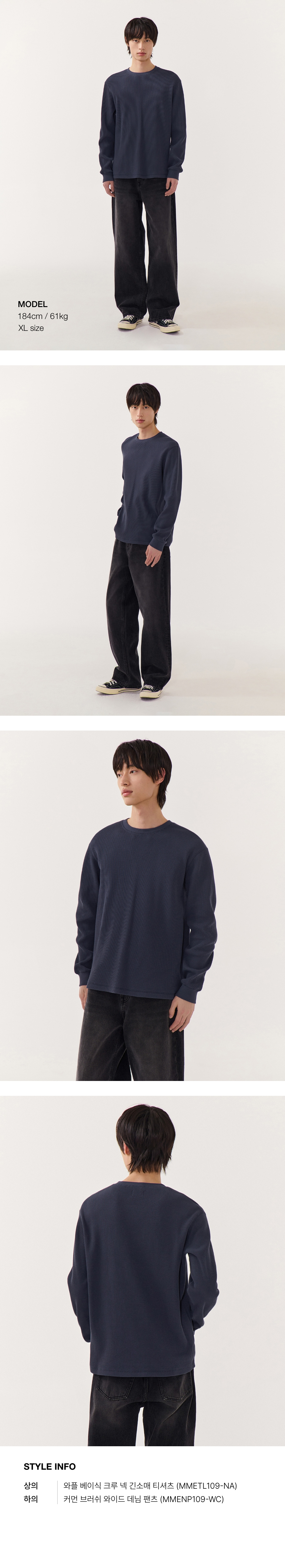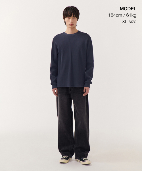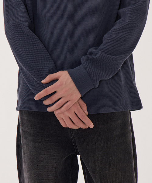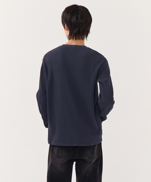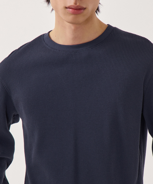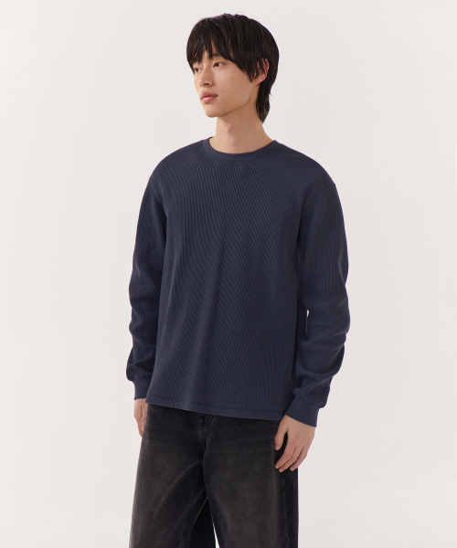 와플 베이식 크루 넥 긴소매 티셔츠 [네이비]