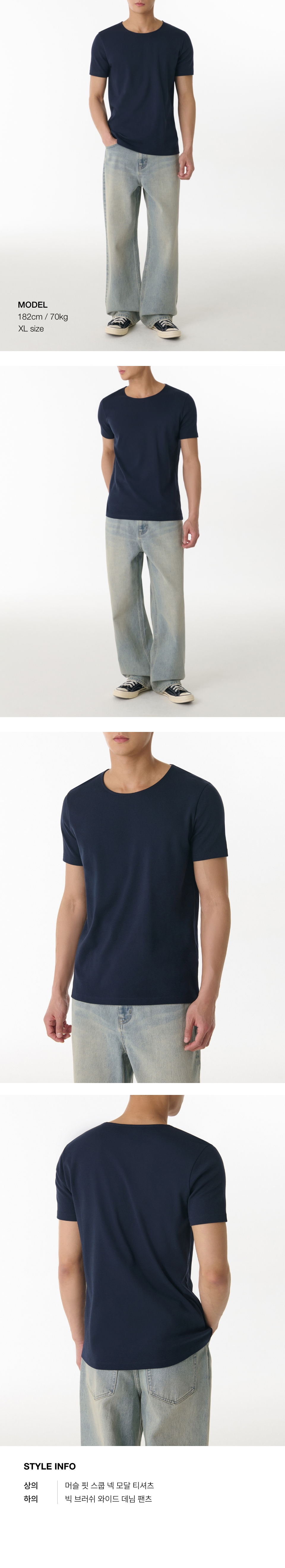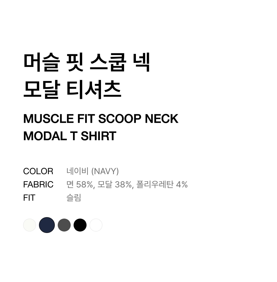 머슬 핏 스쿱 넥 모달 티셔츠 [네이비]