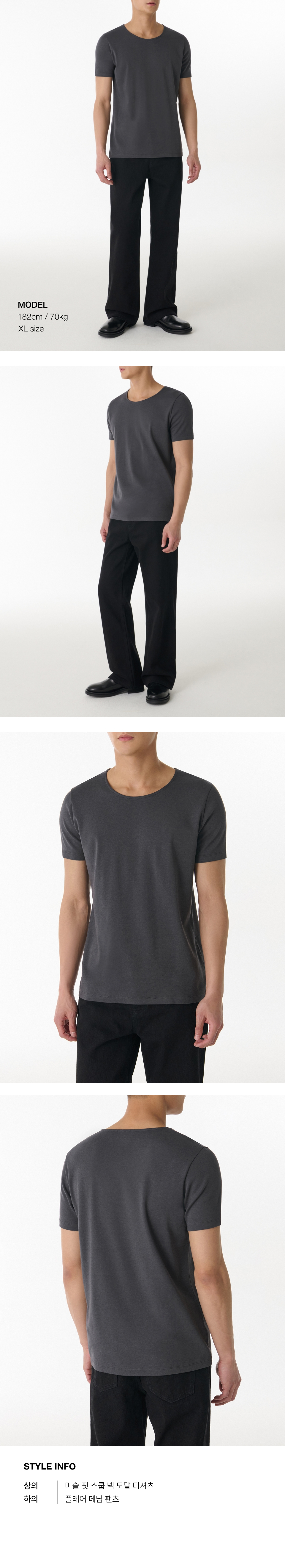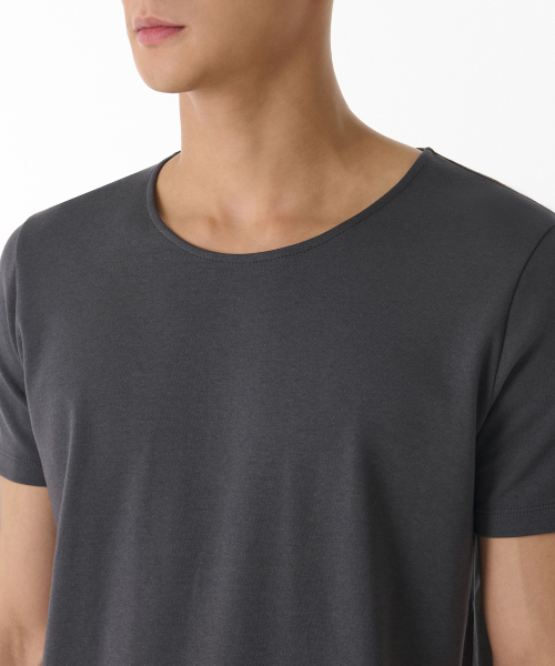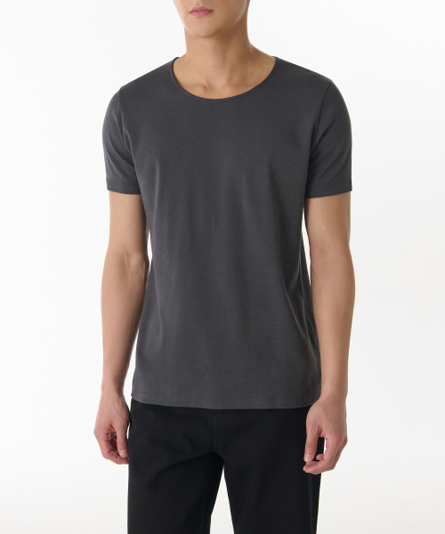 머슬 핏 스쿱 넥 모달 티셔츠 [다크 그레이]