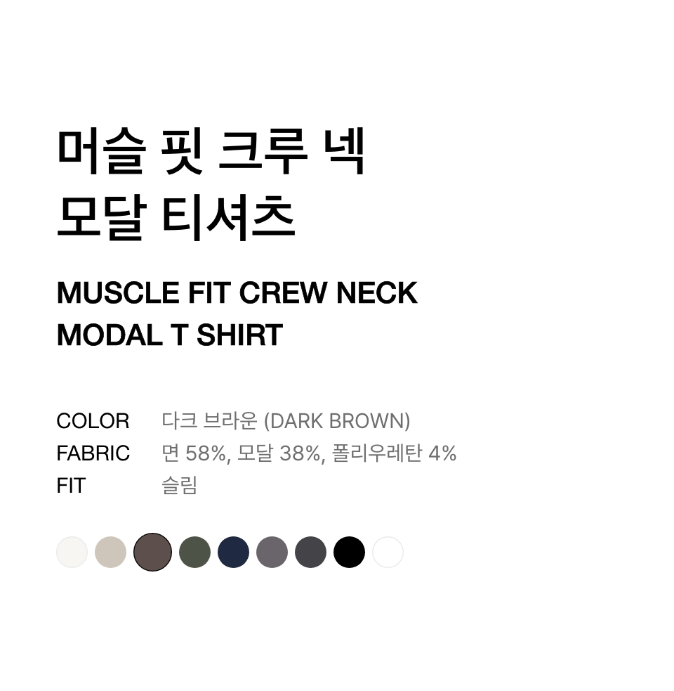머슬 핏 크루 넥 모달 티셔츠 [다크 브라운]
