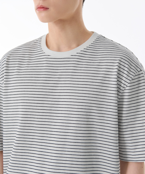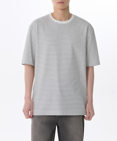 핀 스트라이프 릴렉스드 크루 넥 티셔츠 [화이트/블랙]