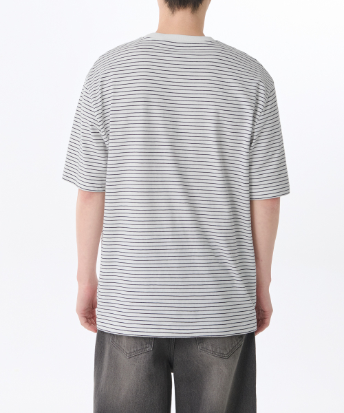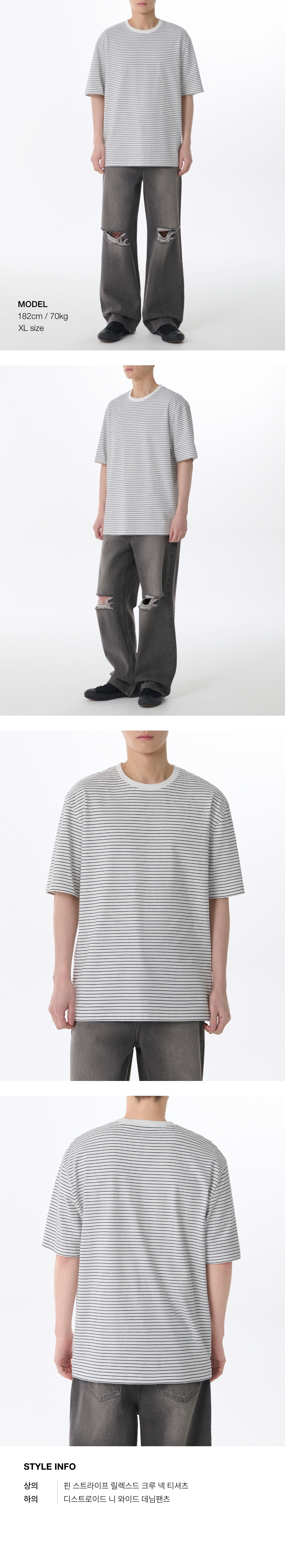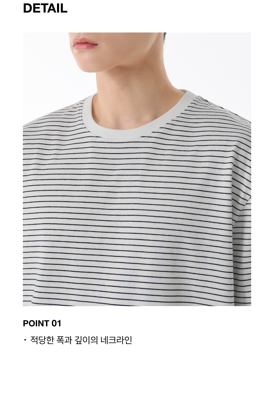 핀 스트라이프 릴렉스드 크루 넥 티셔츠 [블랙/화이트]