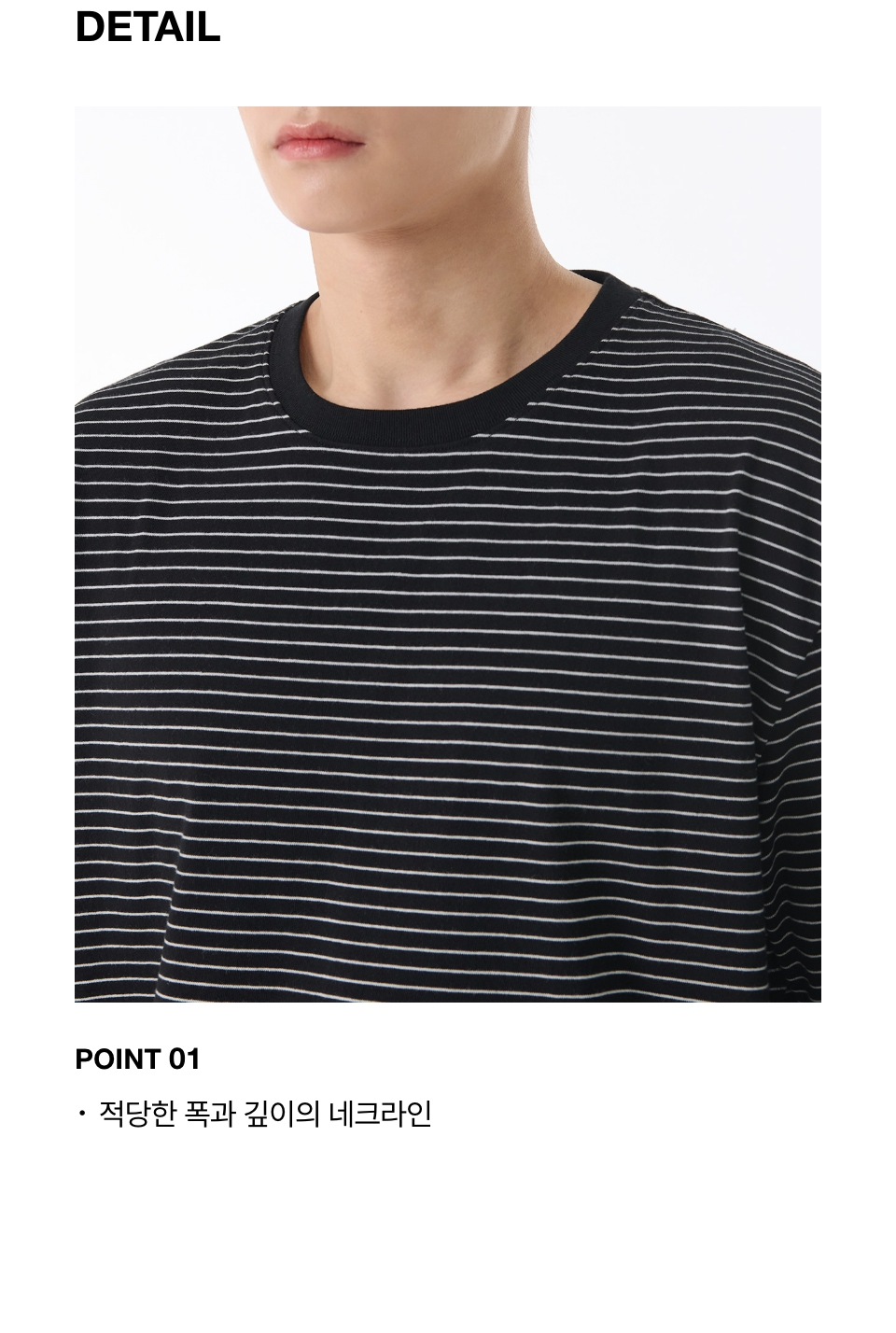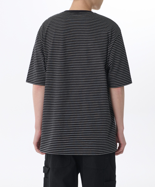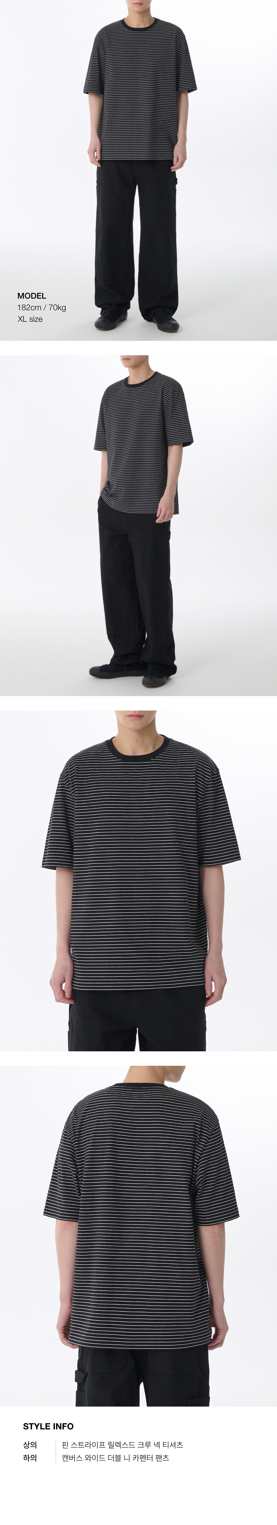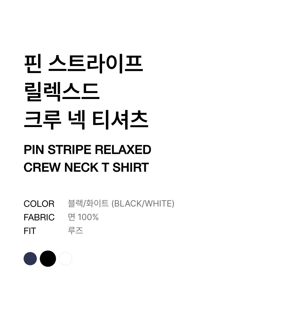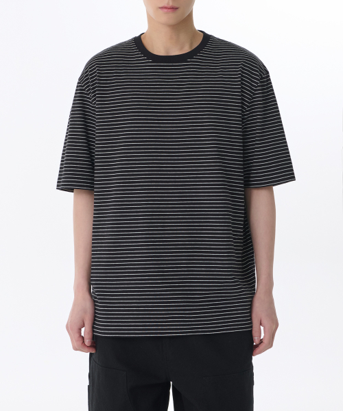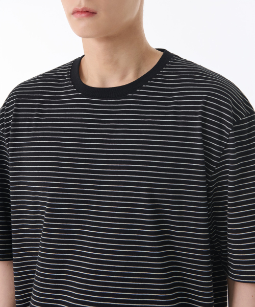핀 스트라이프 릴렉스드 크루 넥 티셔츠 [블랙/화이트]