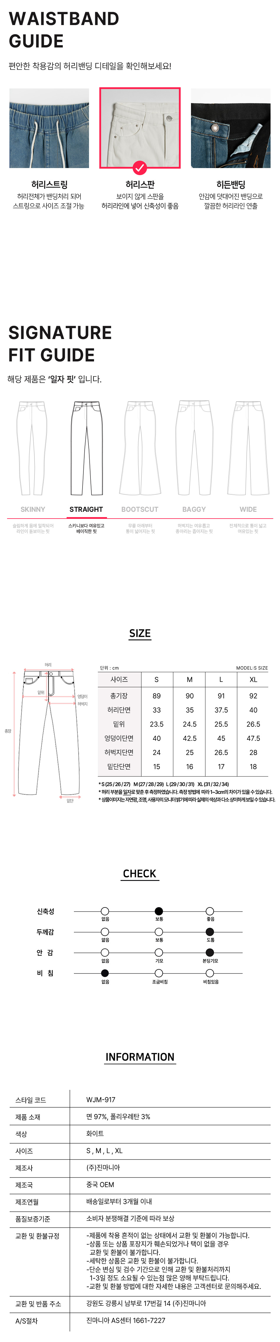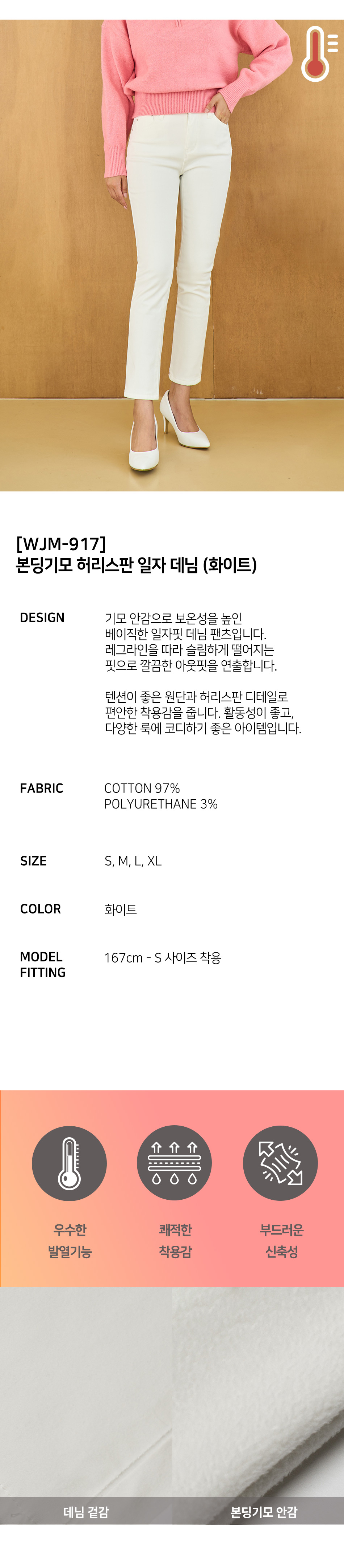 본딩기모 허리스판 일자 데님 (화이트)