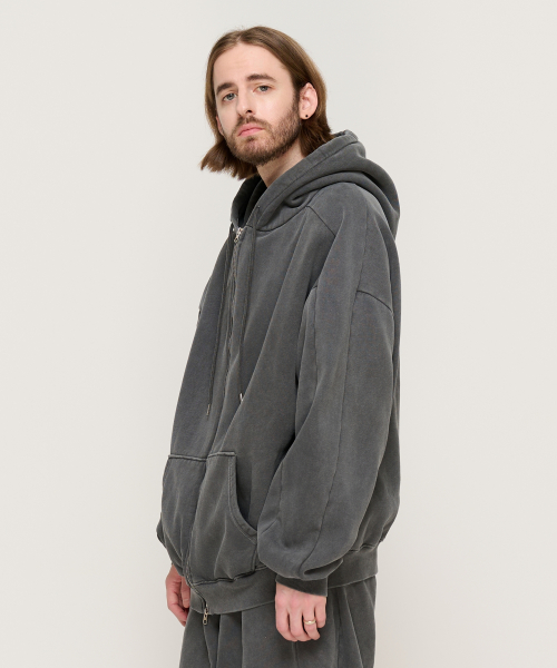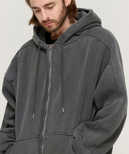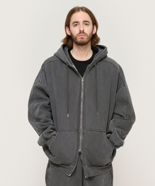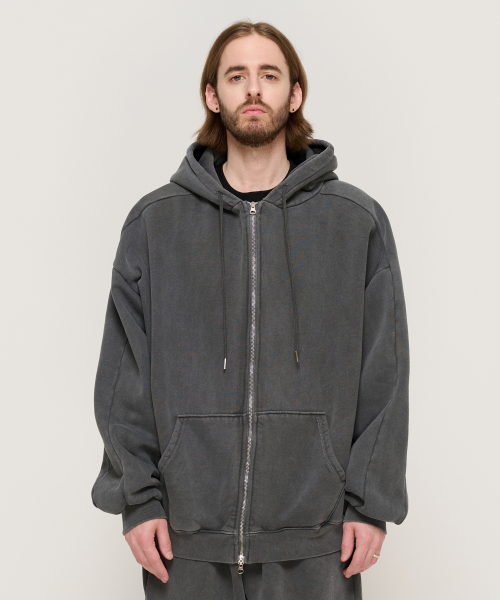 피그먼트 다잉 후드 집업 (차콜)