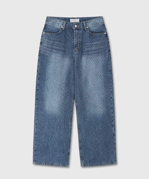패널 커브드 와이드 데님 팬츠 [미드 블루]