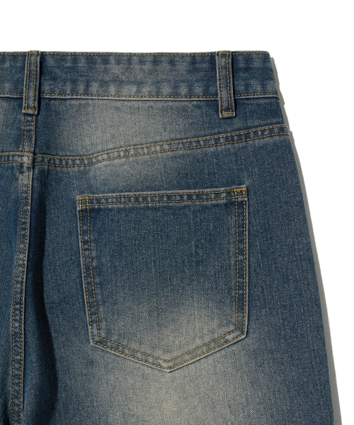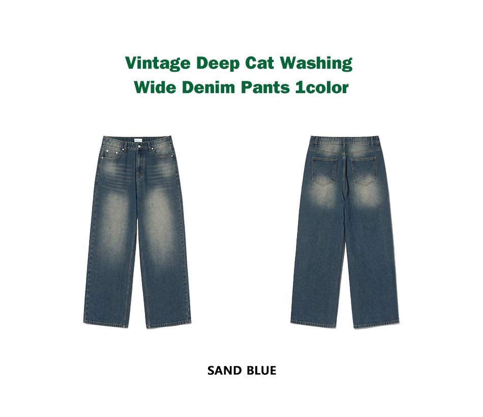 87-STAN161 빈티지 딥 캣워싱 와이드 데님팬츠 샌드블루