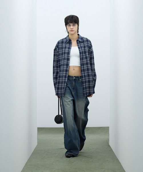 87-STAN047 벌룬핏 워싱 와이드 데님팬츠 빈티지 블루