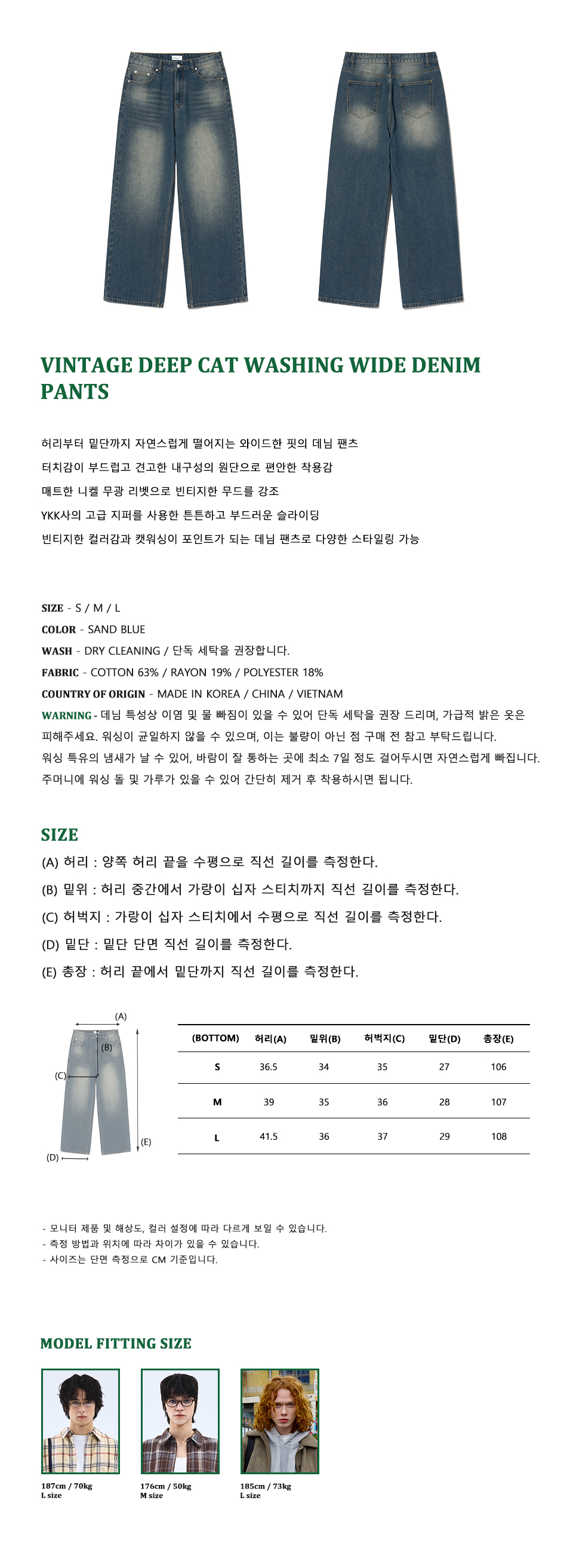 87-STAN047 벌룬핏 워싱 와이드 데님팬츠 빈티지워시드블루