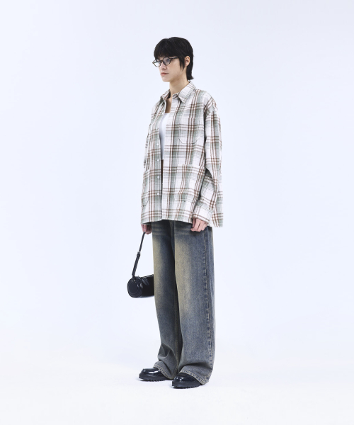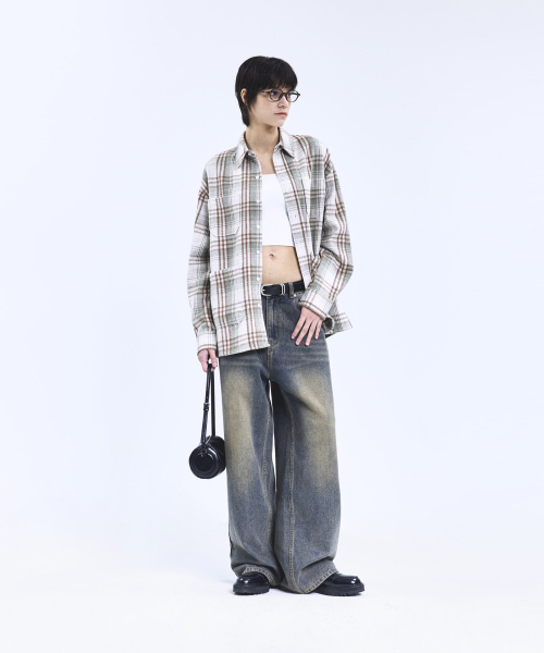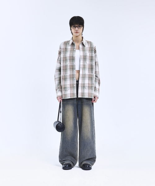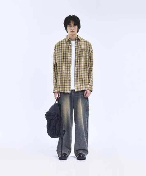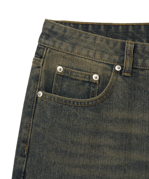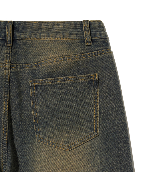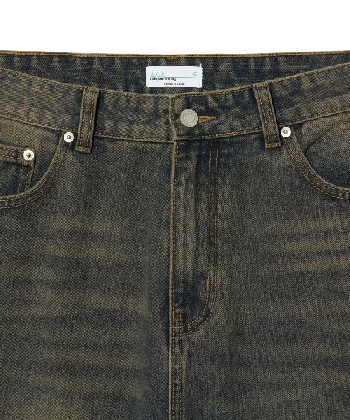 87-STAN168 미스티 캣샌드 워싱 와이드 데님팬츠 빈티지옐로우