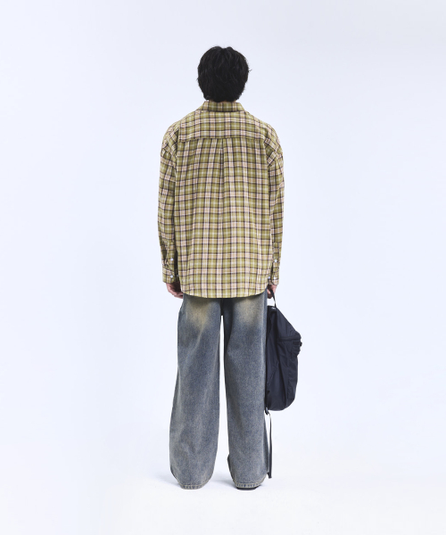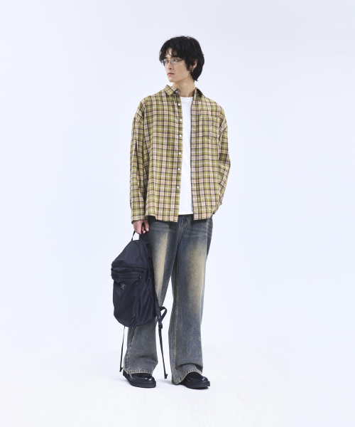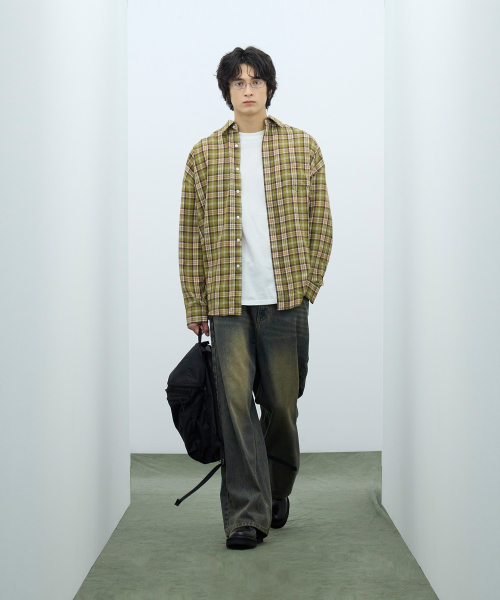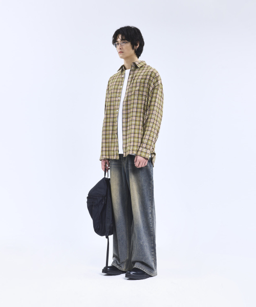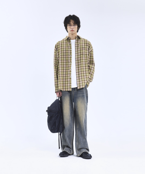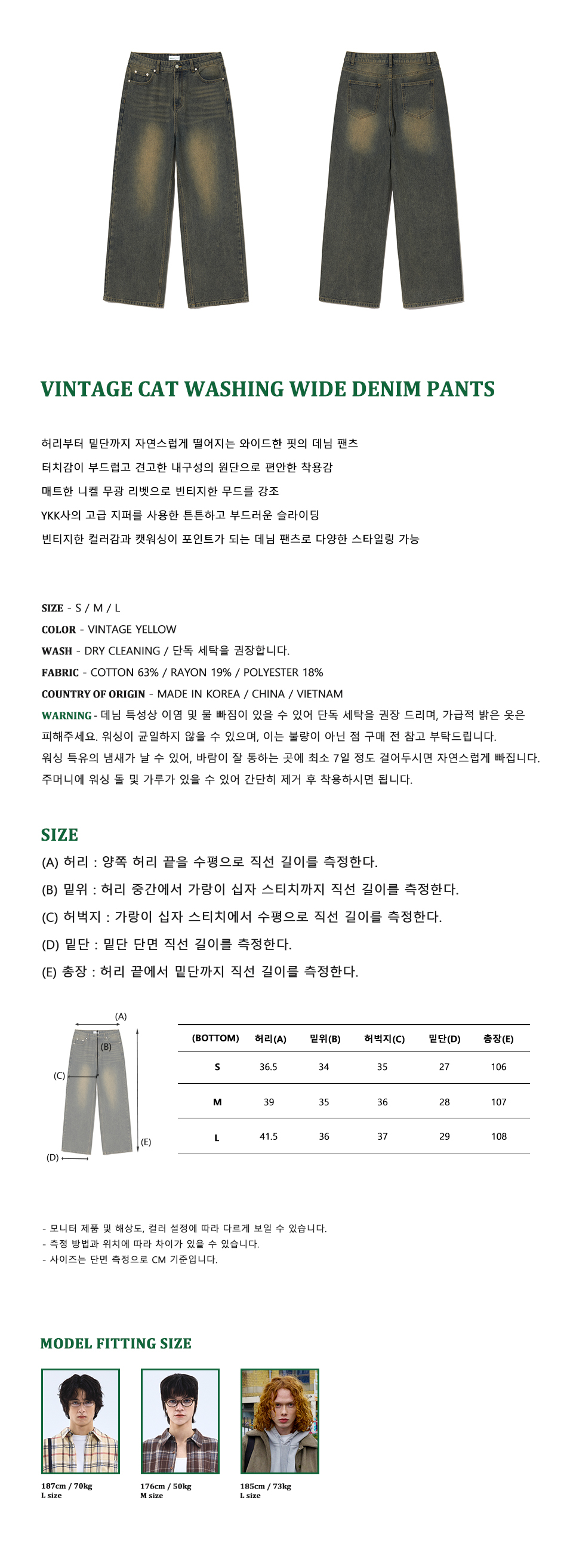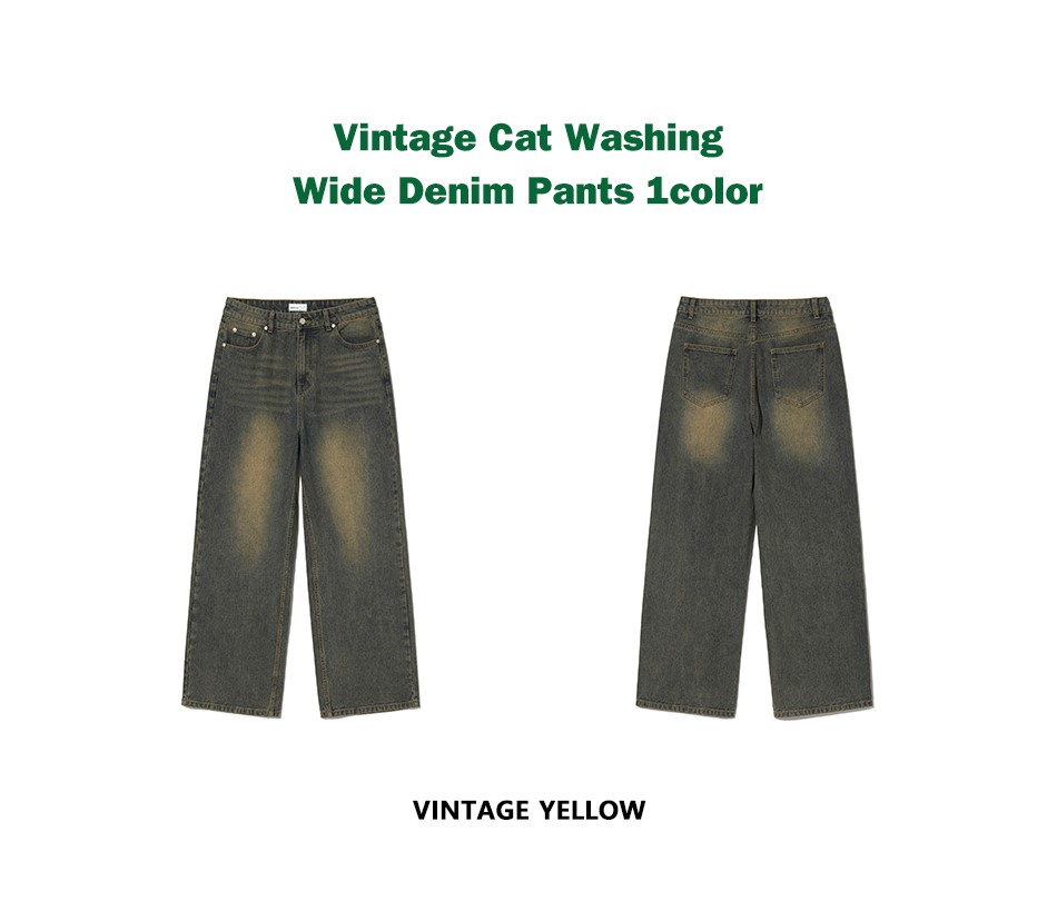 87-STAN165 빈티지 캣워싱 와이드 데님팬츠 빈티지옐로우