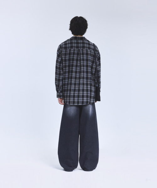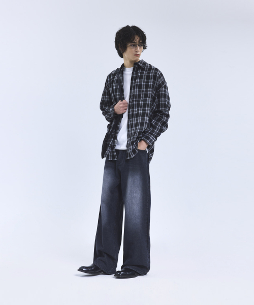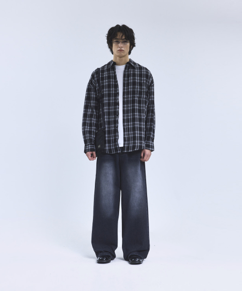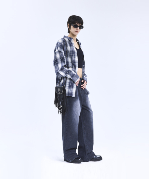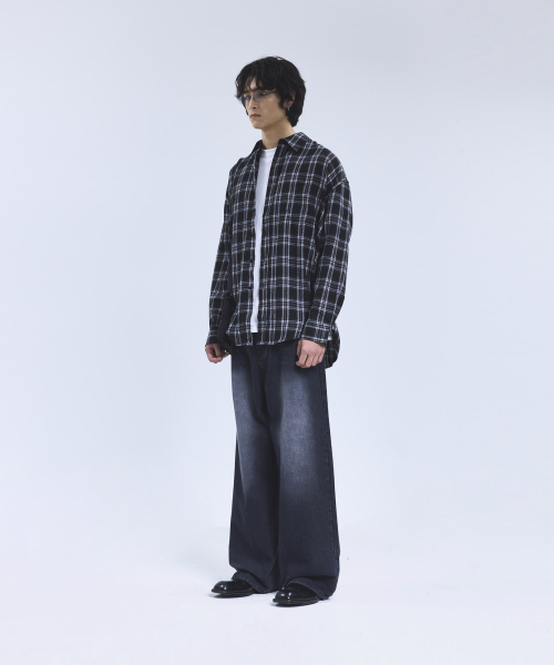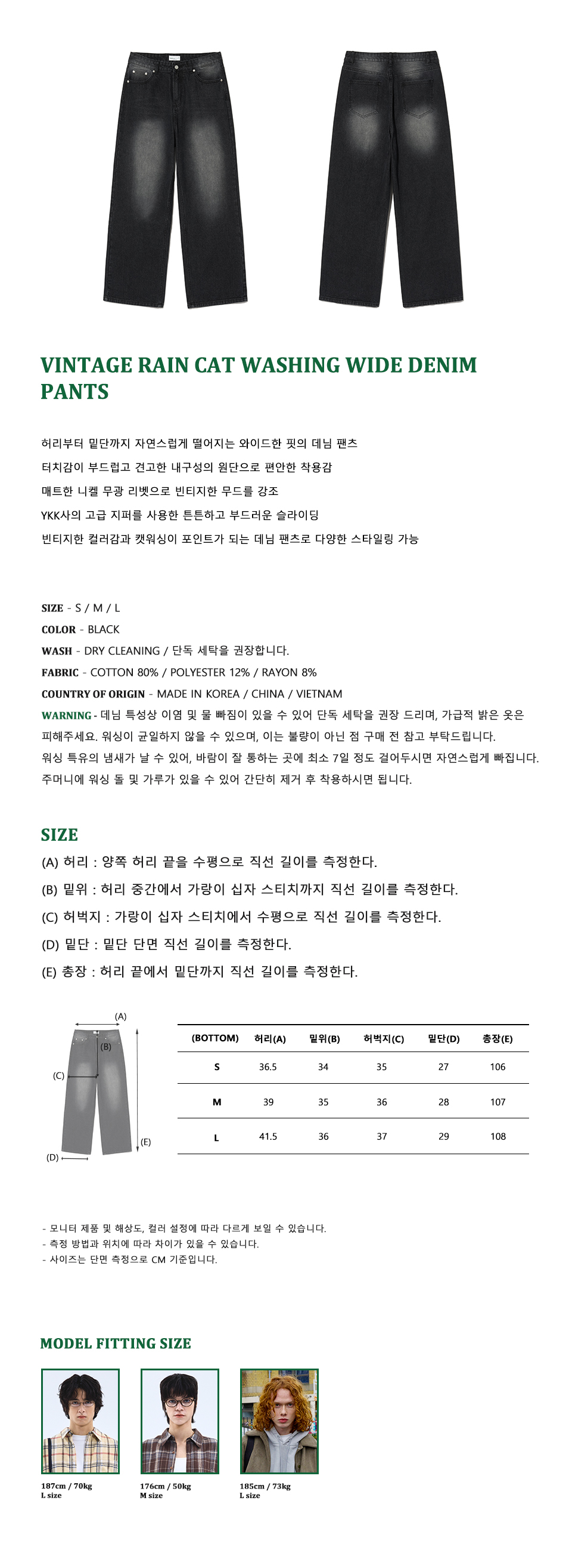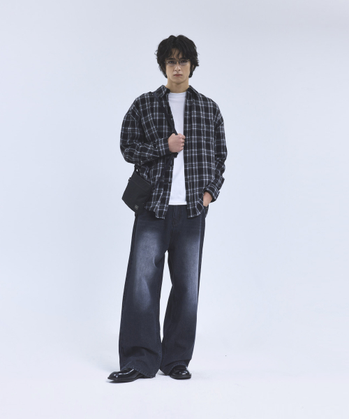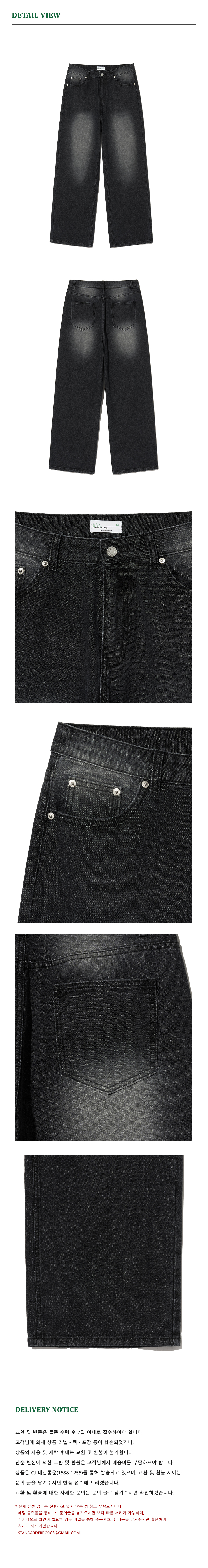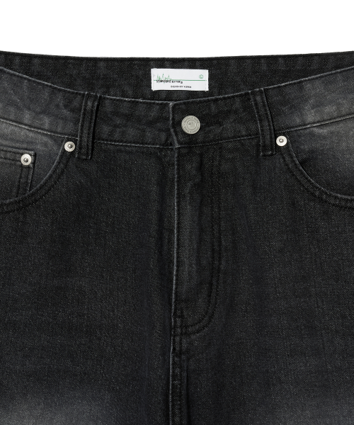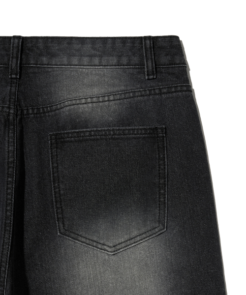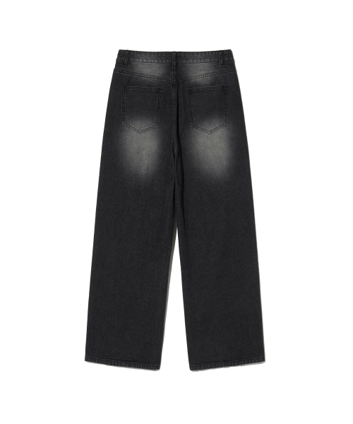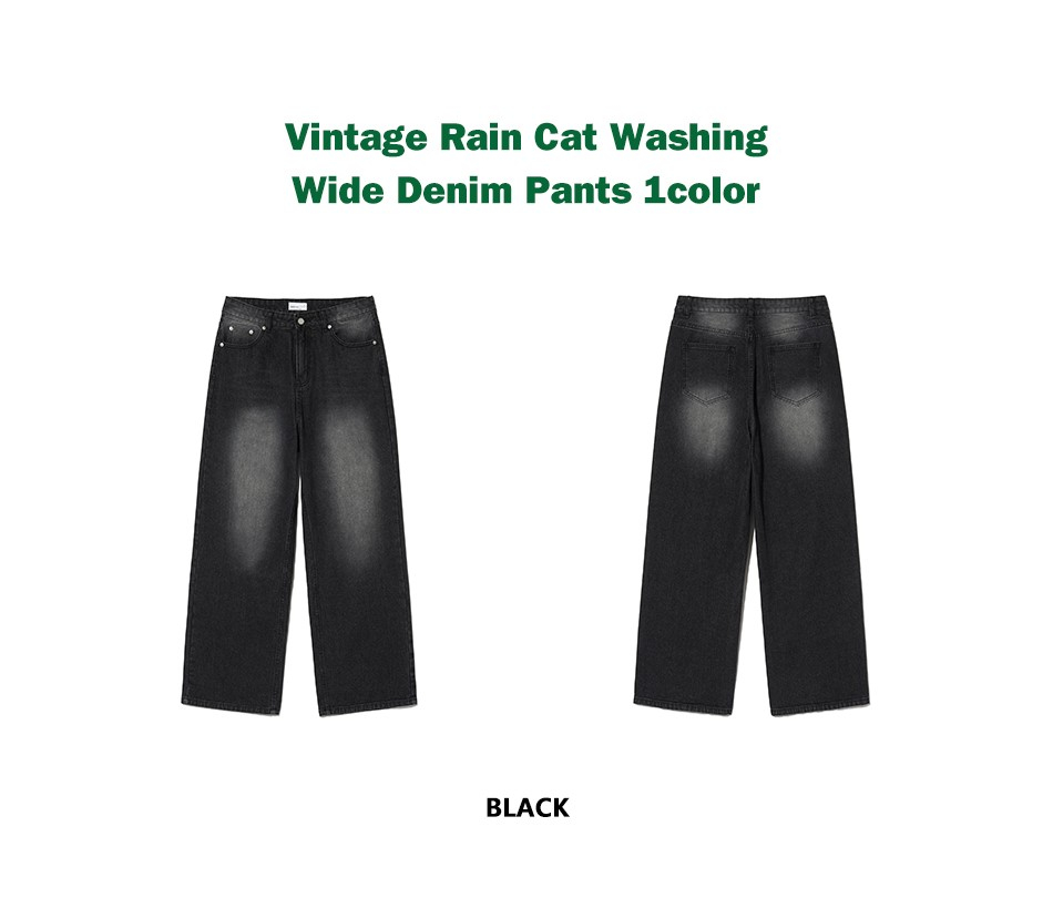 87-STAN166 빈티지 레인 캣워싱 와이드 데님팬츠 블랙
