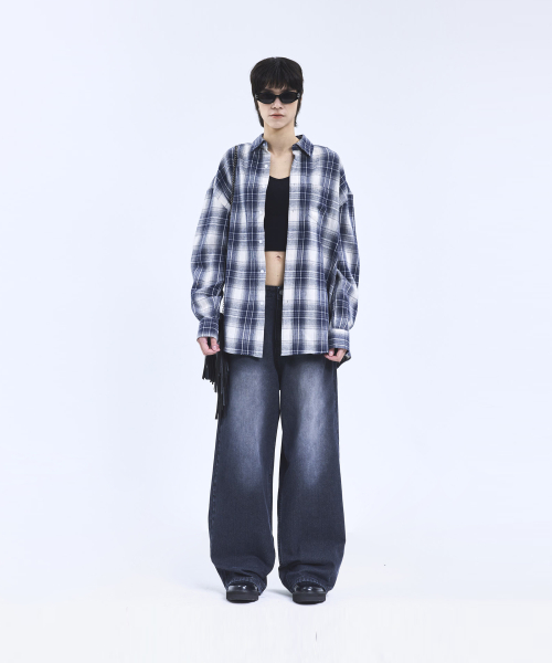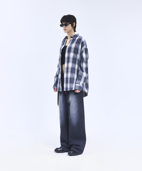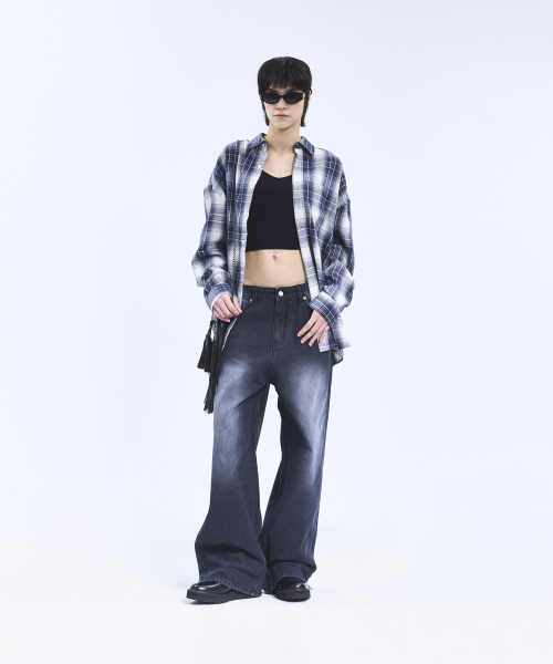 87-STAN163 빈티지 더티 캣워싱 와이드 데님팬츠 빈티지블루