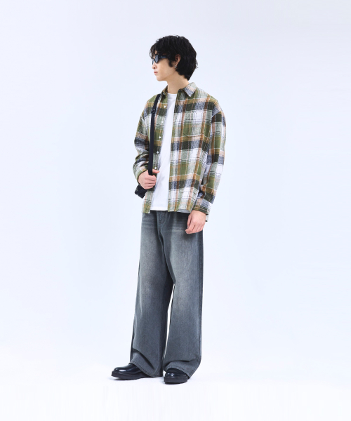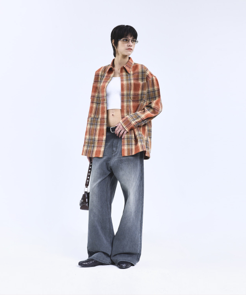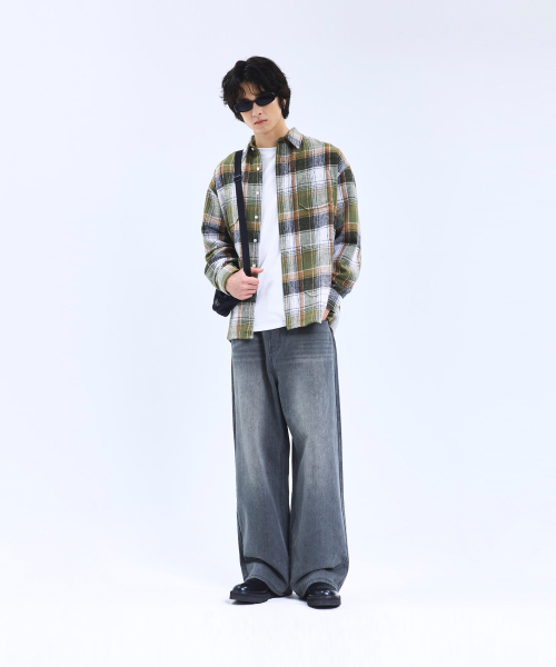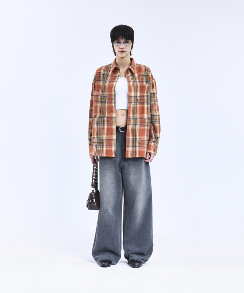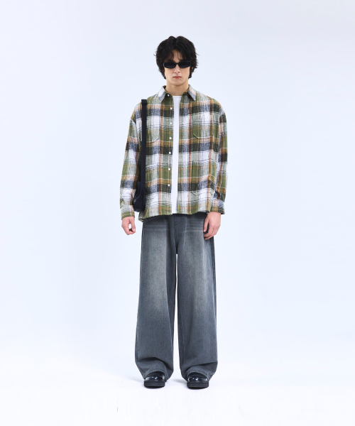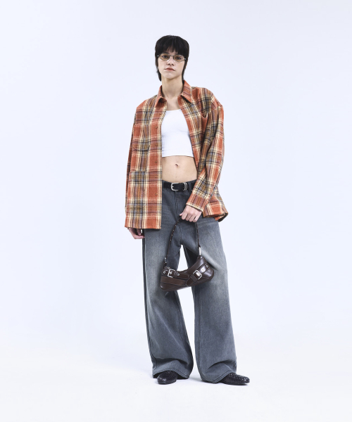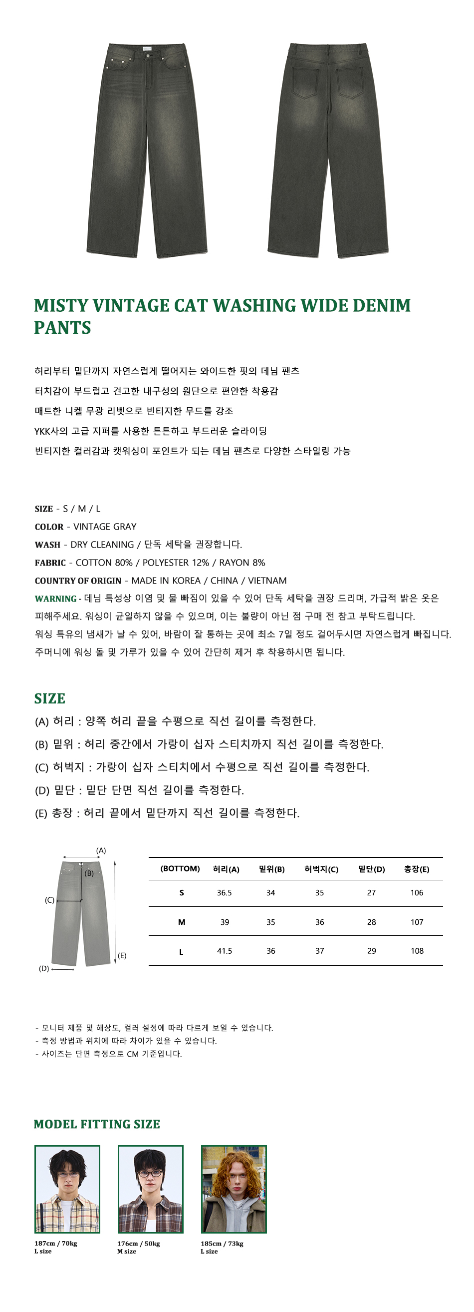 87-STAN167 미스티 빈티지 캣워싱 와이드 데님팬츠 빈티지그레이