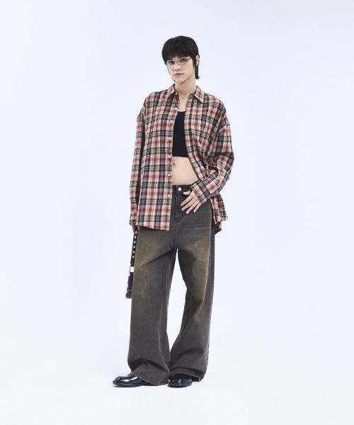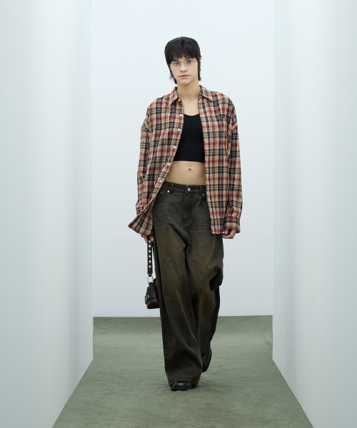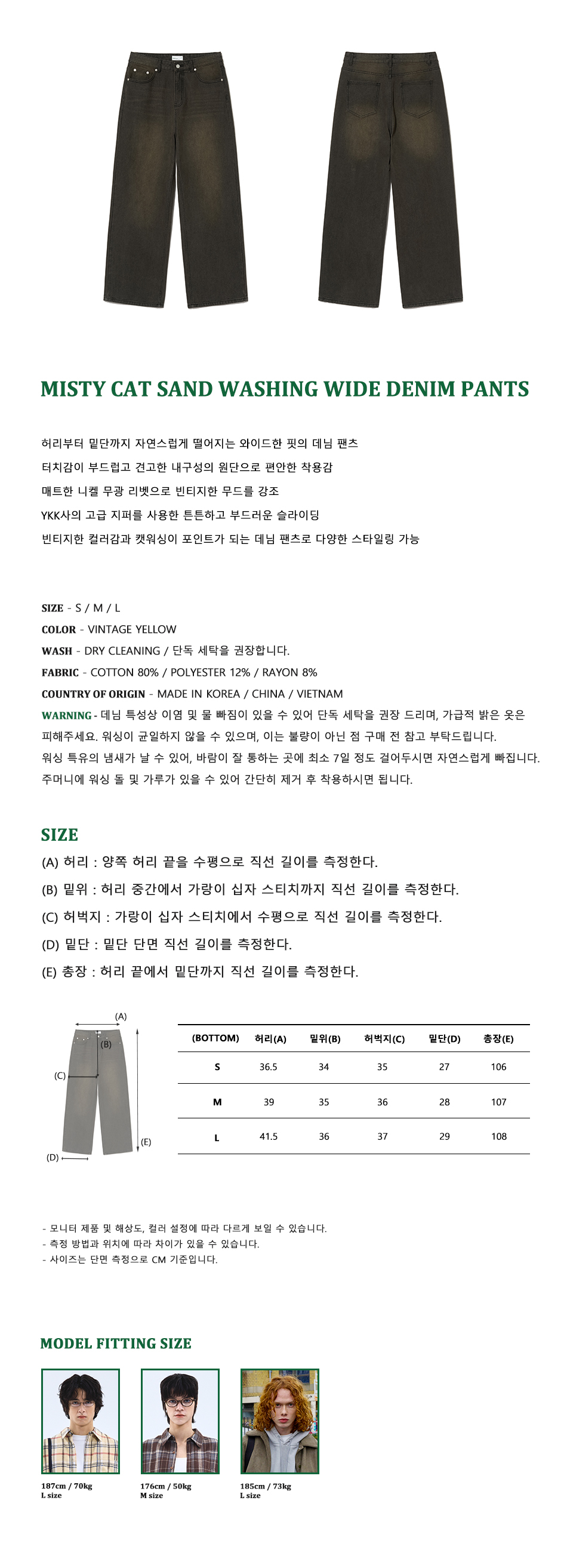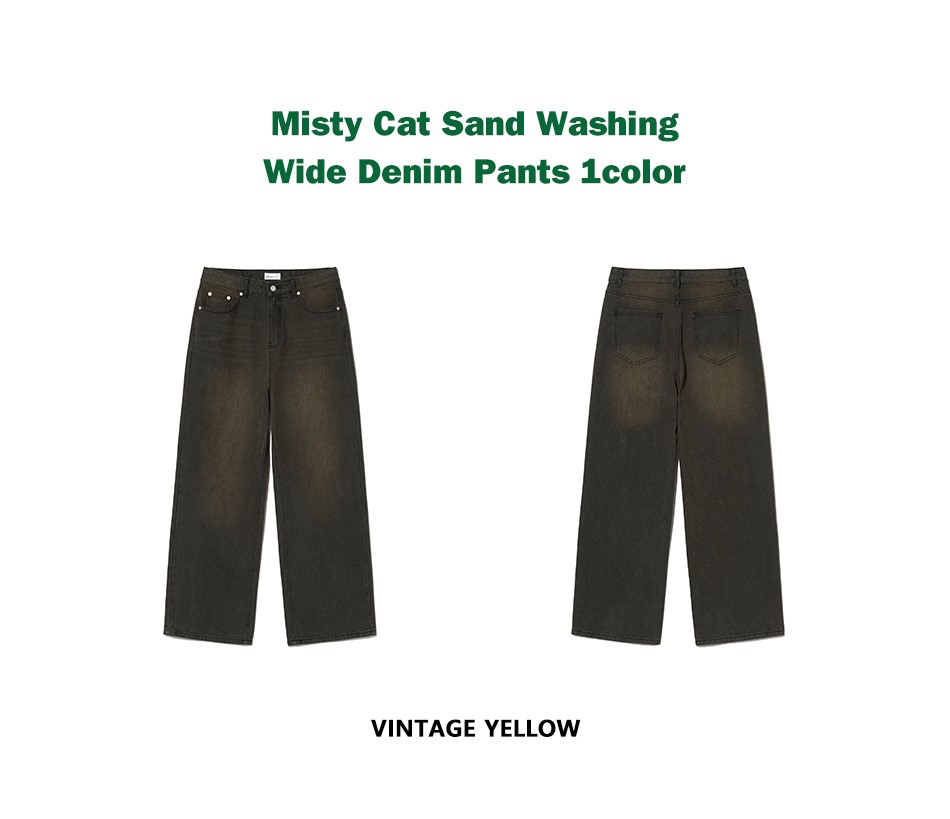 87-STAN168 미스티 캣샌드 워싱 와이드 데님팬츠 빈티지옐로우