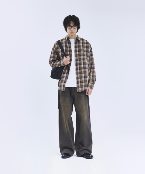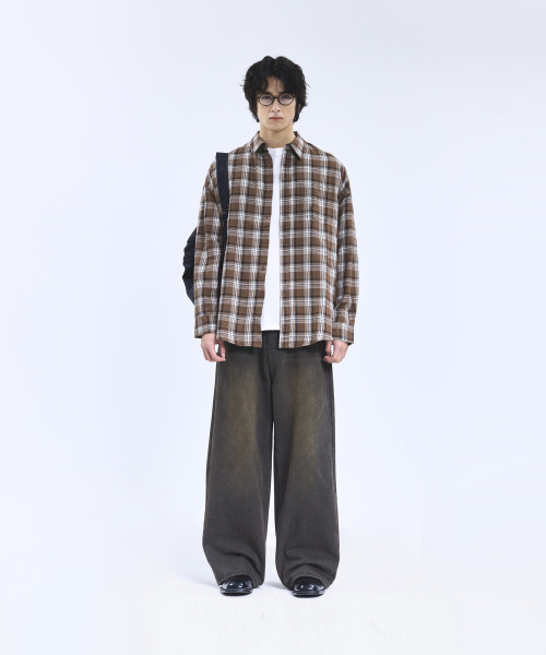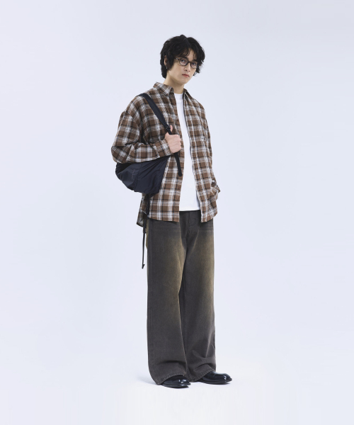 87-STAN165 빈티지 캣워싱 와이드 데님팬츠 빈티지옐로우