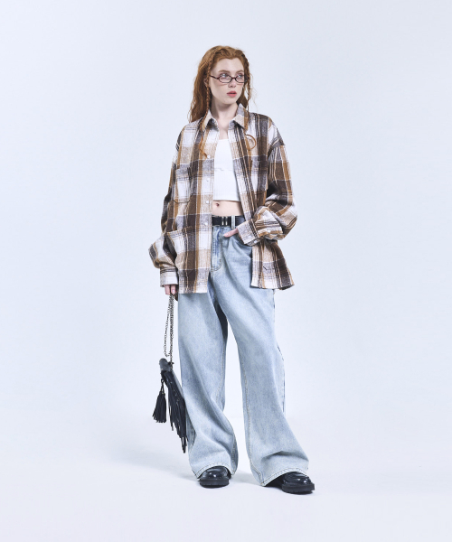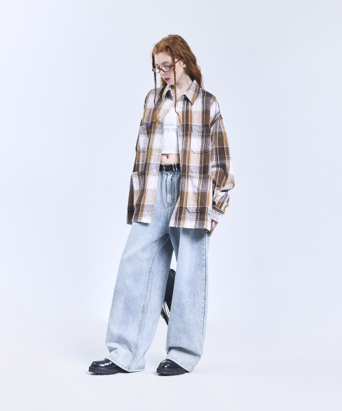 87-STAN054 캣샌드 레인 워싱 와이드 데님팬츠