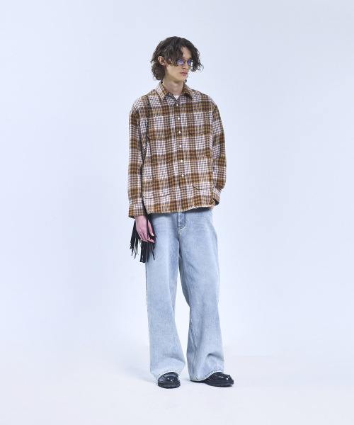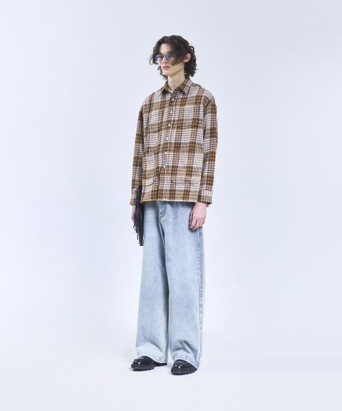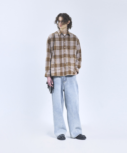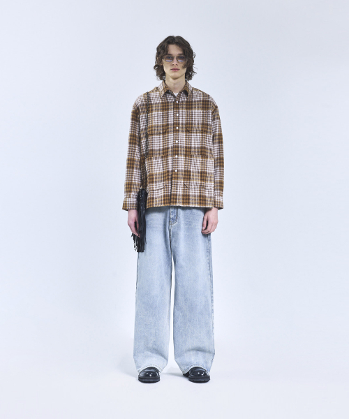 87-STAN182 헤비 워싱 와이드 데님팬츠 딥옐로우