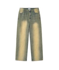 87-STAN168 미스티 캣샌드 워싱 와이드 데님팬츠 빈티지옐로우