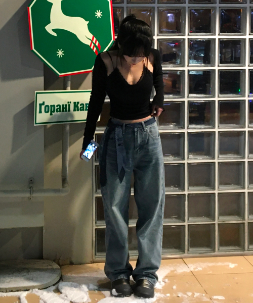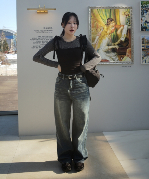 87-STAN047 벌룬핏 워싱 와이드 데님팬츠 빈티지 블루