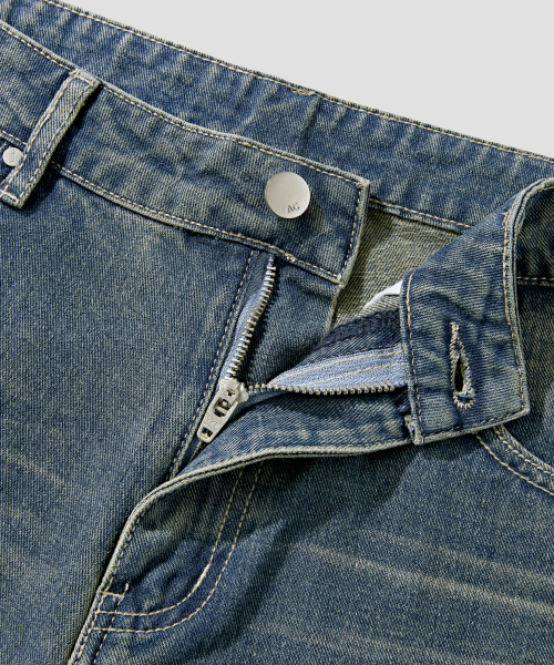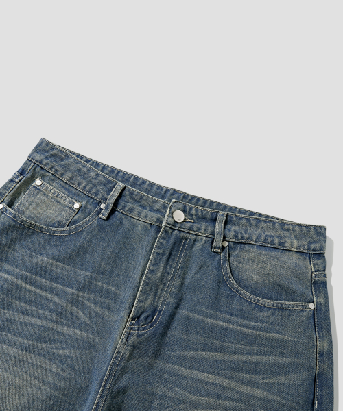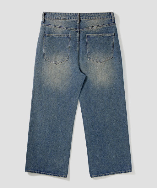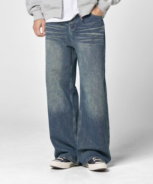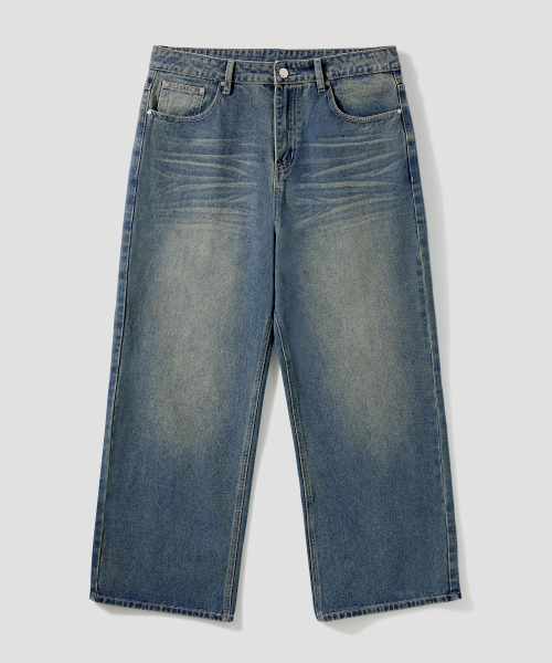 빈티지 바이오 캣워싱 와이드 데님 팬츠 [샌드 블루]