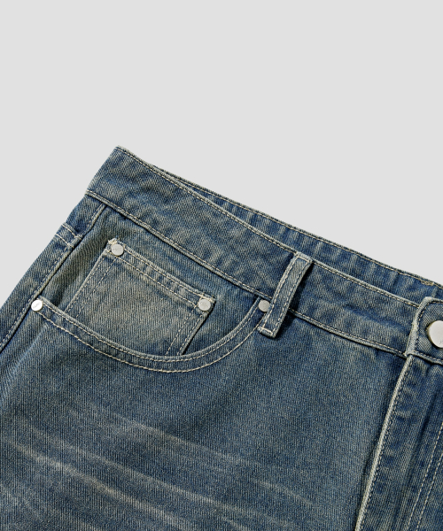 빈티지 바이오 캣워싱 와이드 데님 팬츠 [샌드 인디고]