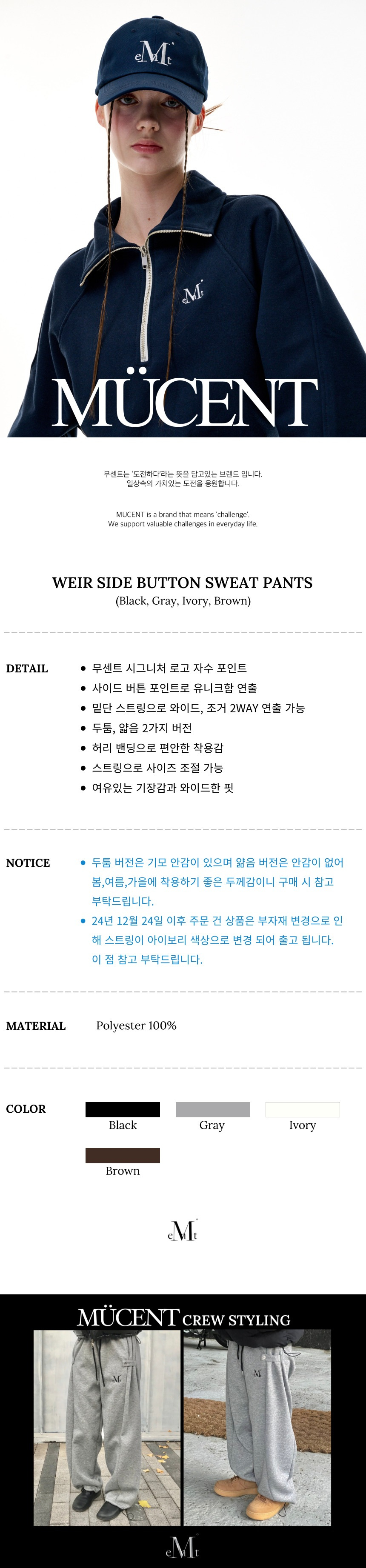 위어 사이드 버튼 스웻 팬츠 남녀공용 (4컬러)