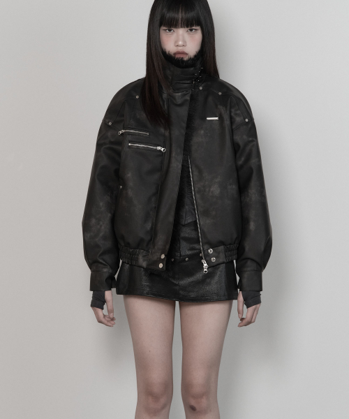 -빈티지한 감성의 워싱 레더가 돋보이는 유니크한 무스탕 가죽 점퍼