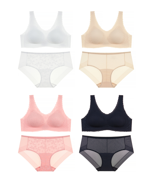 [3PACK] 소프트핏 쉘론 U넥 패드일체형 브라팬티 세트