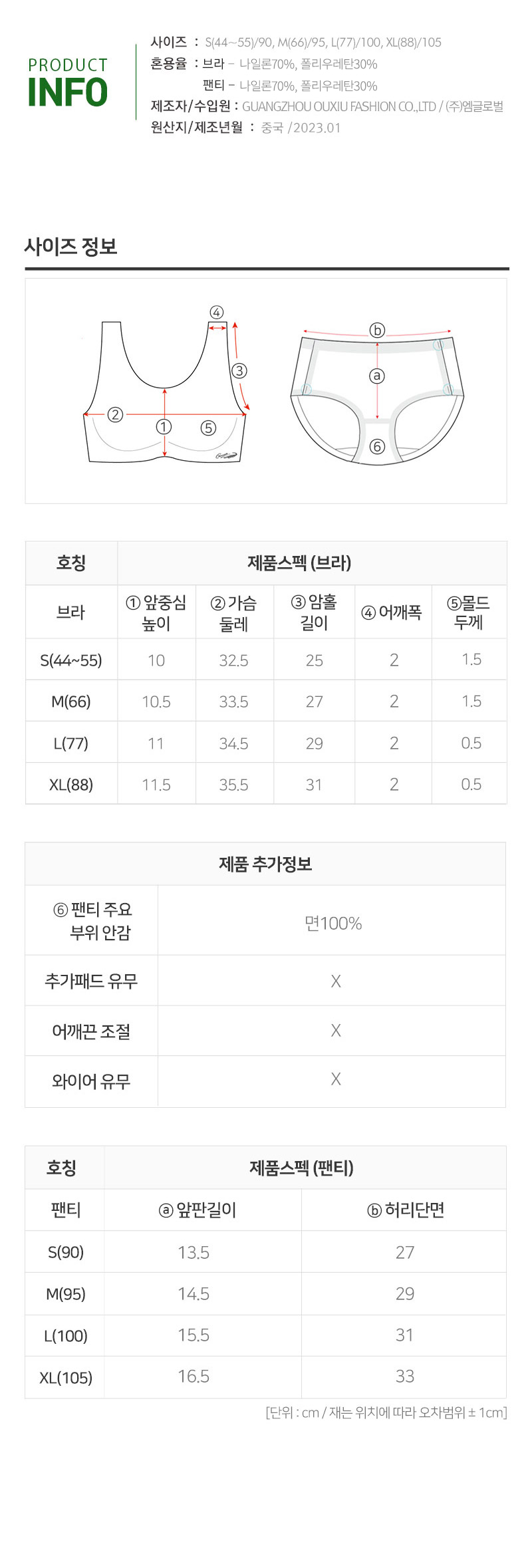 [2PACK] 나일론골지 패드고정형 후크형 브라팬티 세트