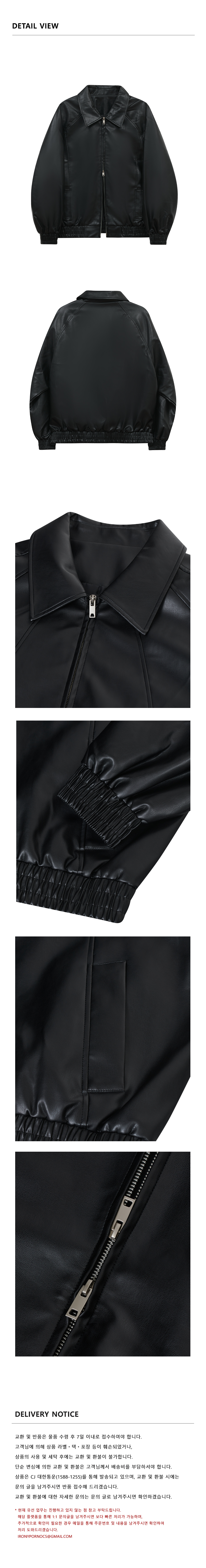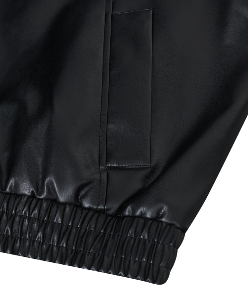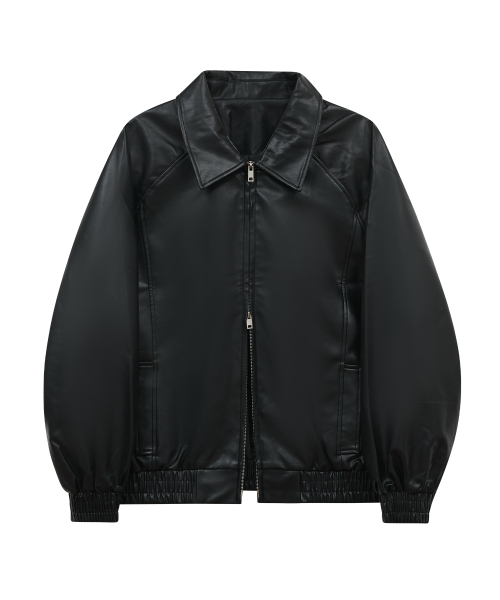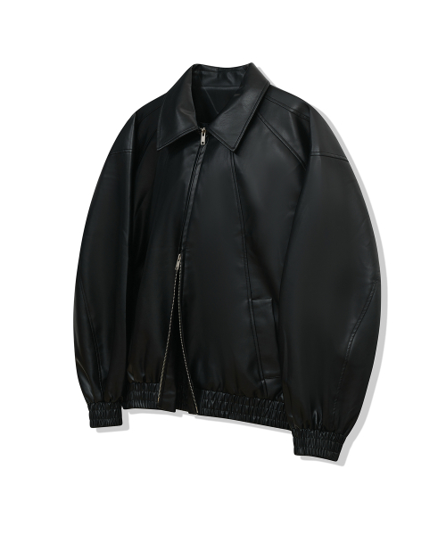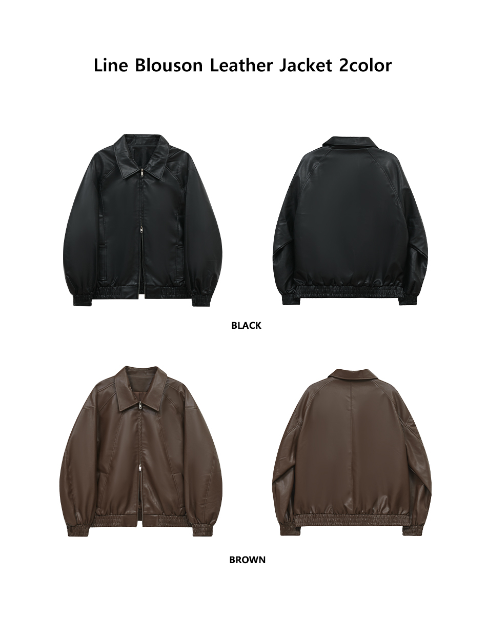 86-IRO329 라인 블루종 레더 자켓 블랙