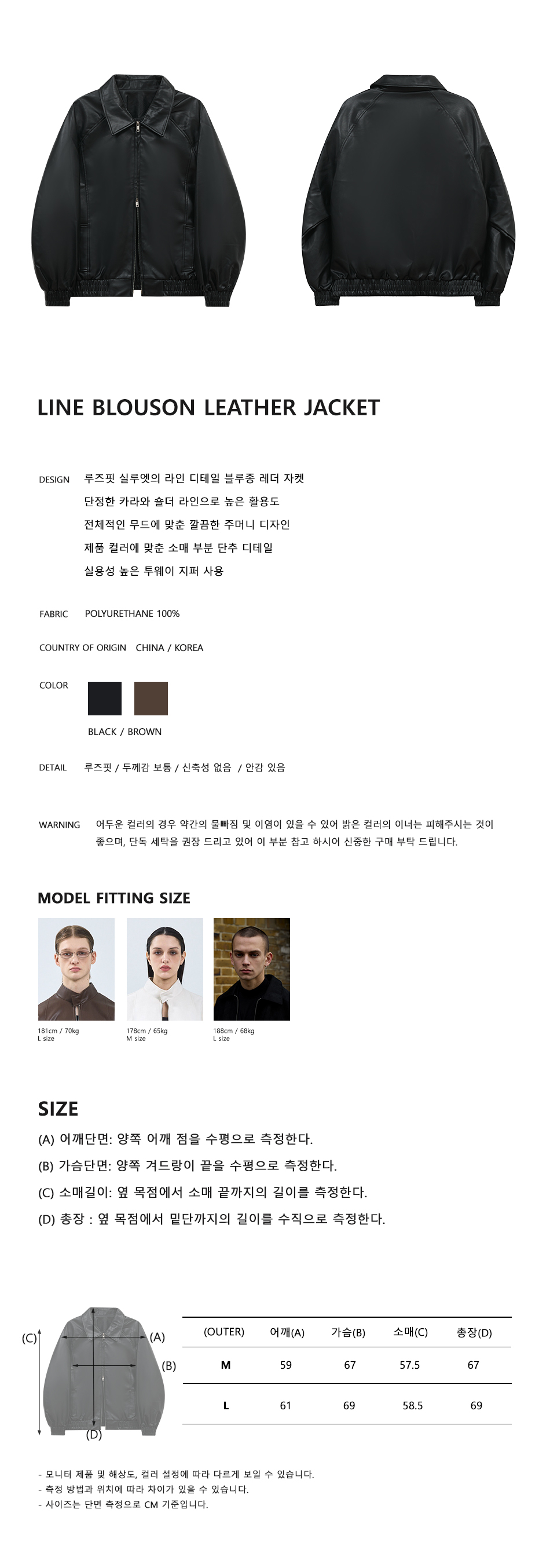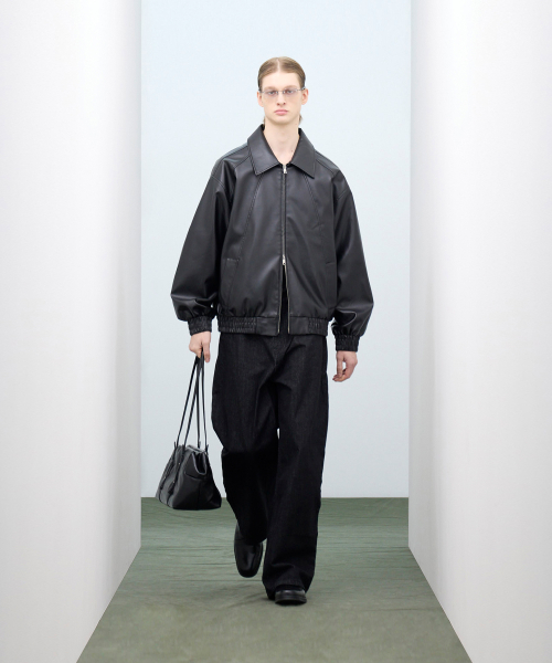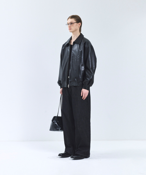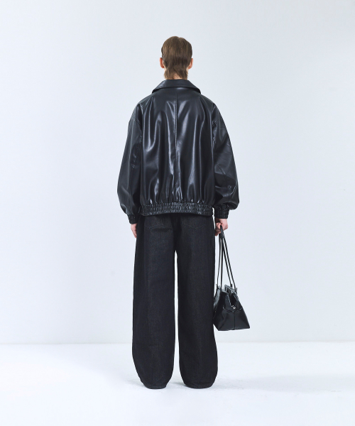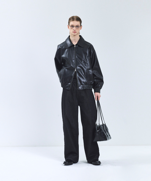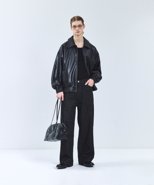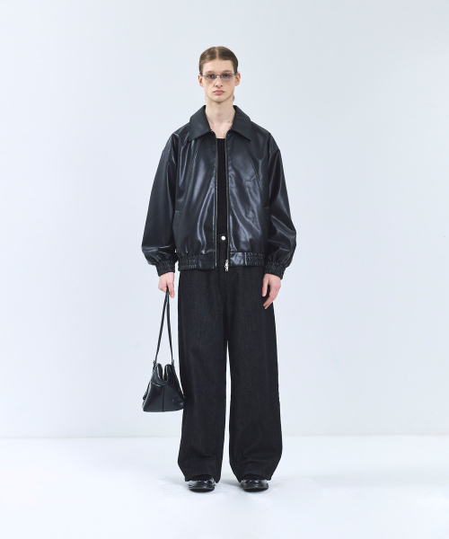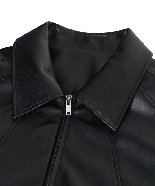 86-IRO329 라인 블루종 레더 자켓 블랙