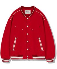 라인 스터드 베이스볼 자켓 - 레드