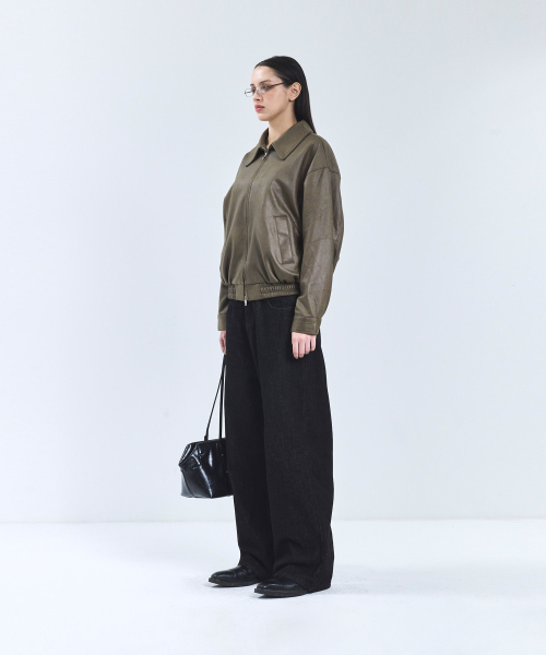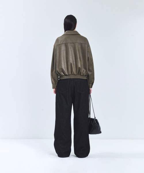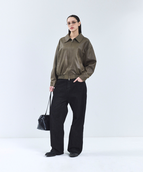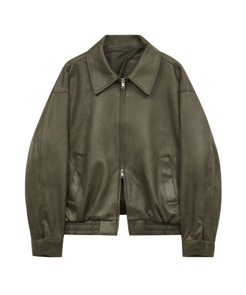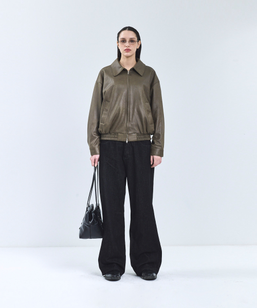 8248 워시드 레더 블루종 점퍼 (BLACK)