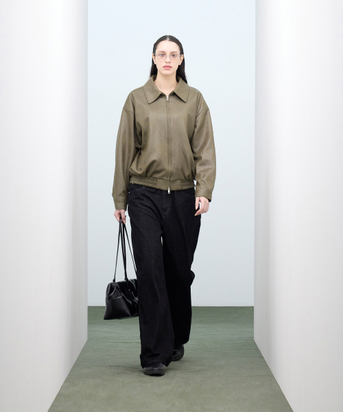 비건 스웨이드 오버핏 미니멀 인시전 스트레이트 집업 자켓 [브라운]