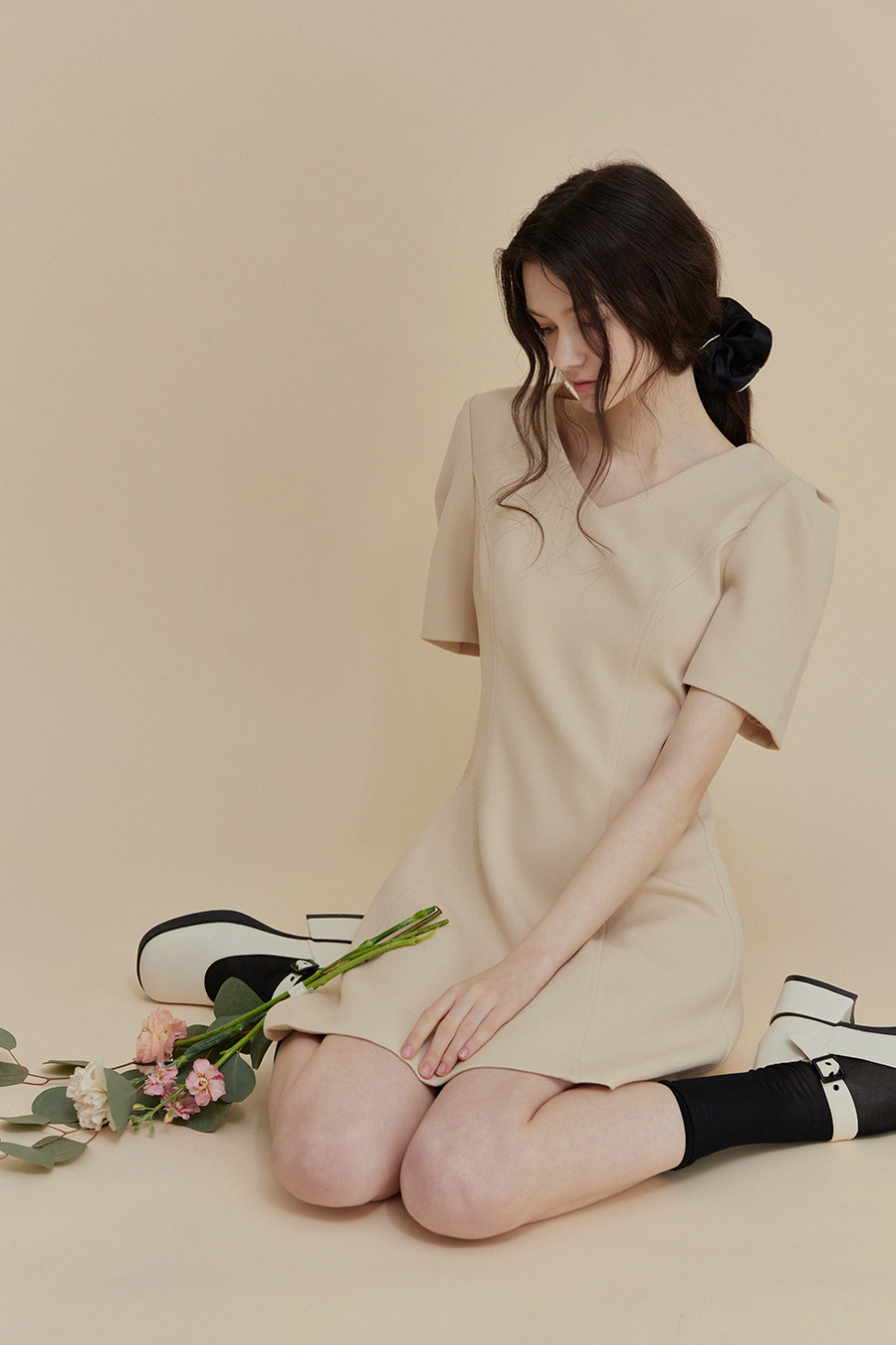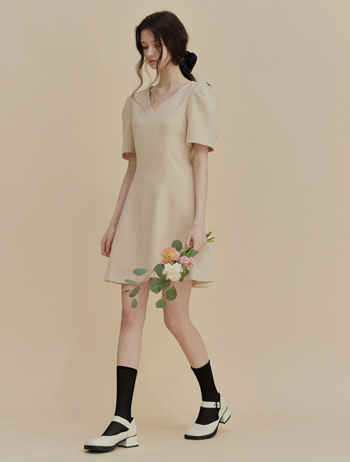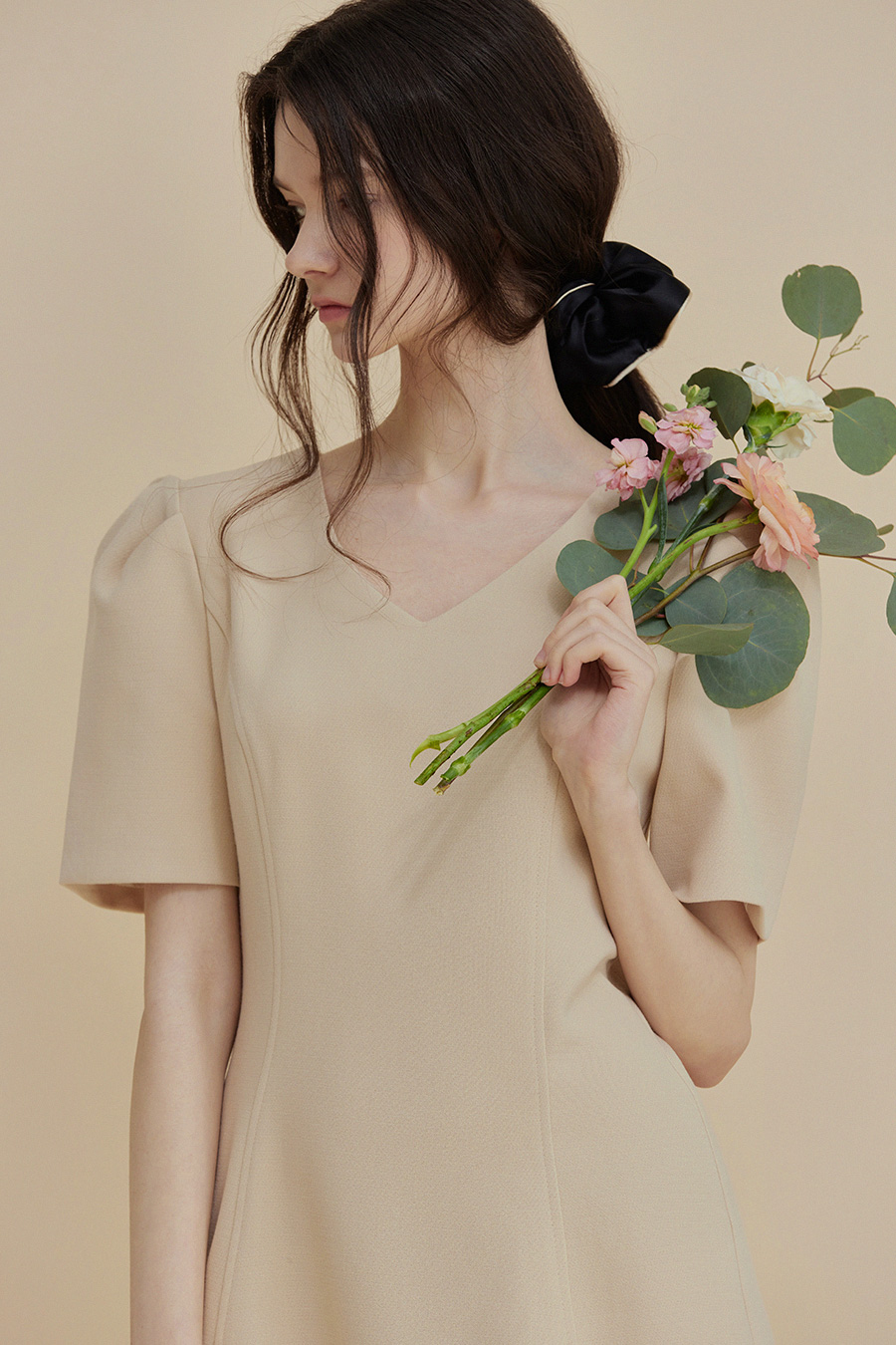 드뮤 브이넥 퍼프 라인 원피스 (SS/FW Ver.)
