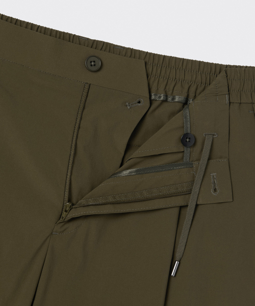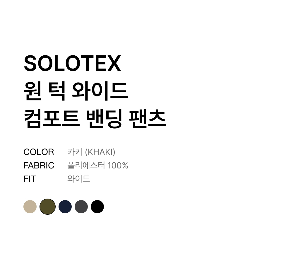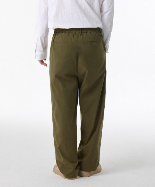 SOLOTEX 원 턱 와이드 컴포트 밴딩 팬츠 [카키]