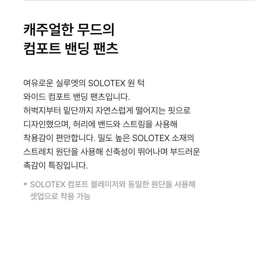 SOLOTEX 원 턱 와이드 컴포트 밴딩 팬츠 [그레이]
