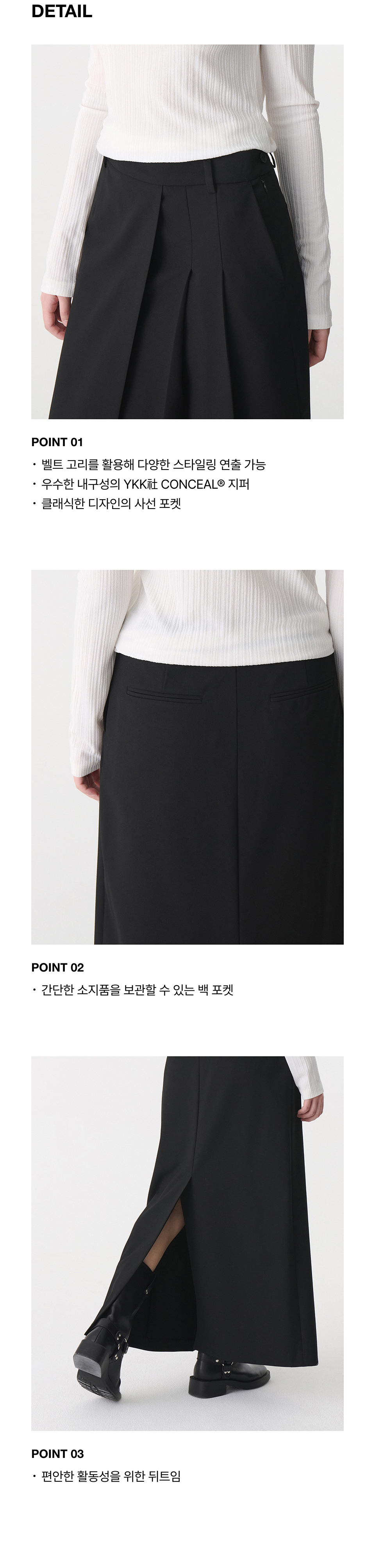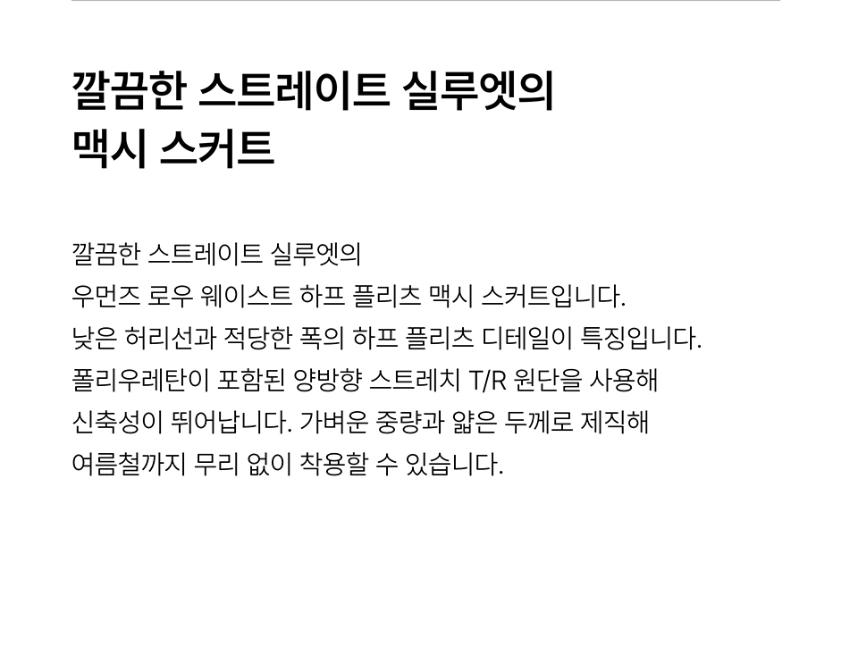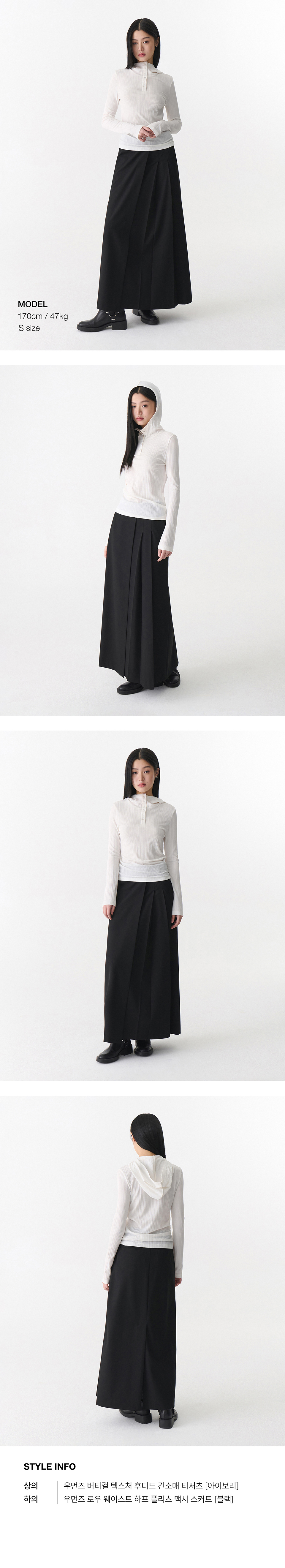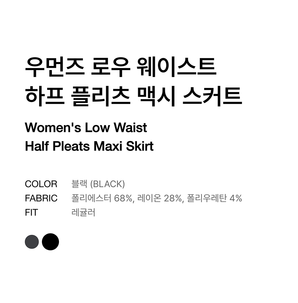 우먼즈 로 웨이스트 하프 플리츠 맥시 스커트 [블랙]
