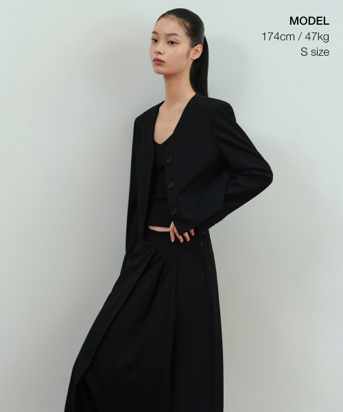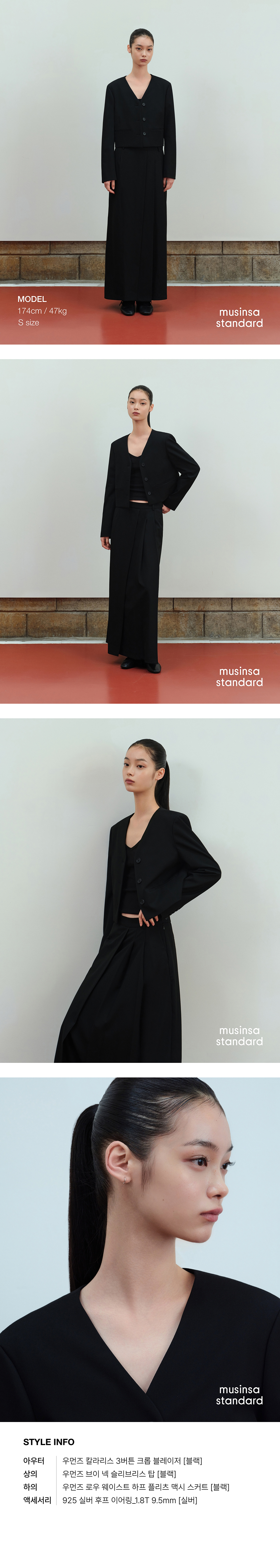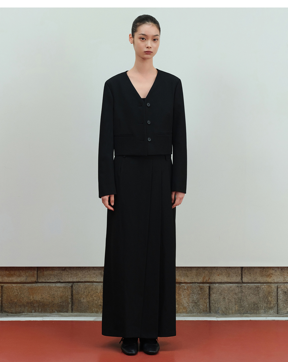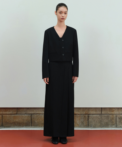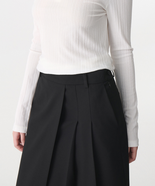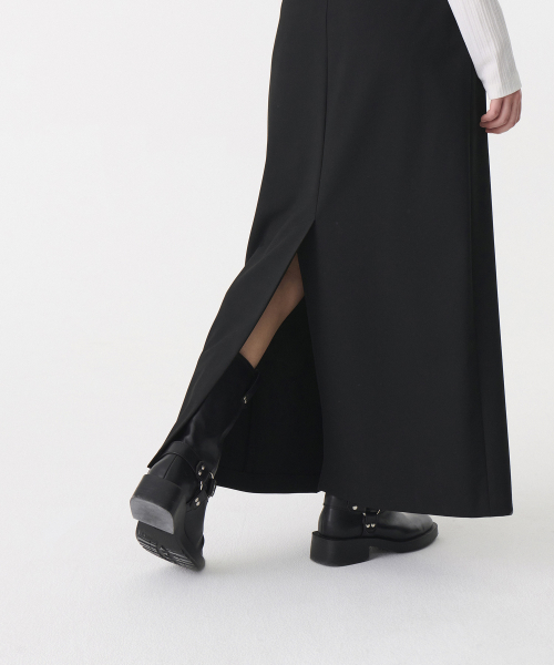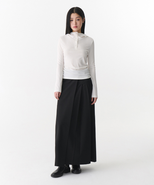 우먼즈 로 웨이스트 하프 플리츠 맥시 스커트 [블랙]