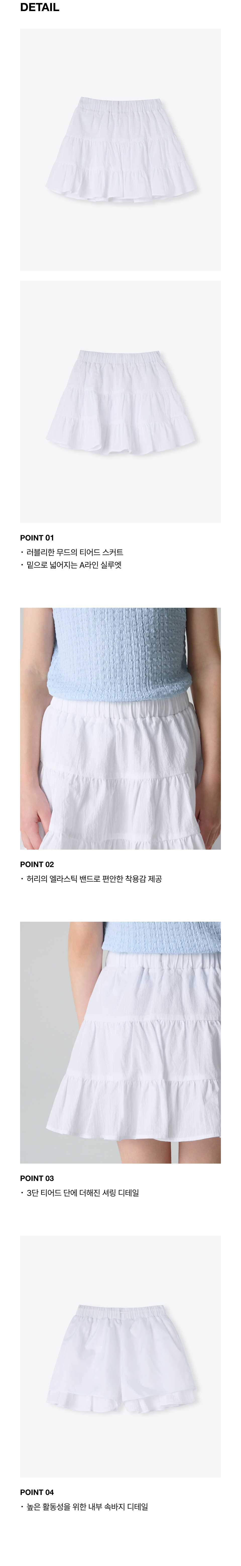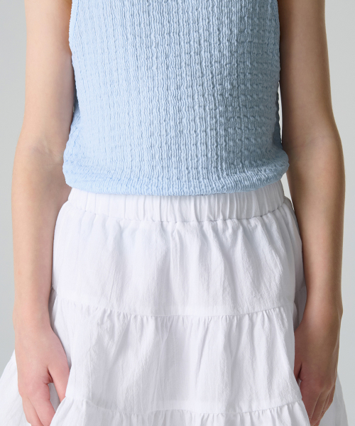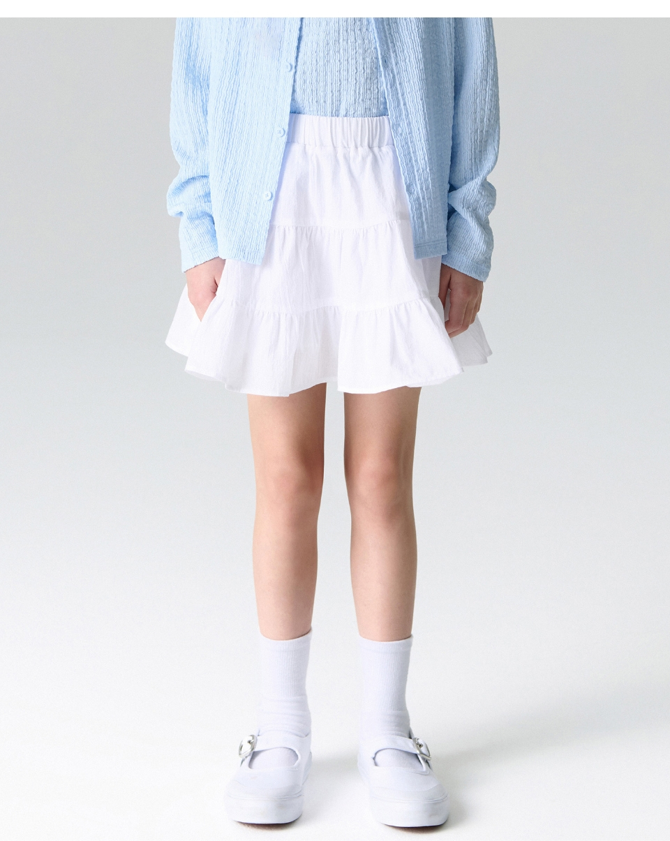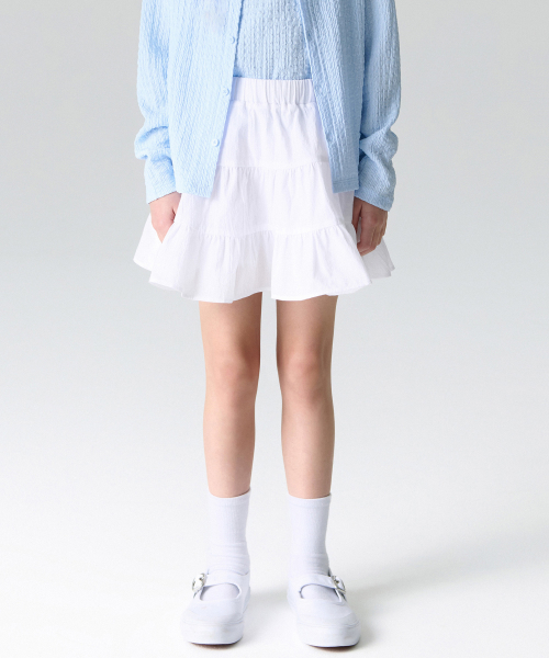 코튼 밴딩 티어드 스커트 [화이트]