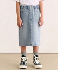 데님 밴딩 미디 스커트 [라이트 인디고]